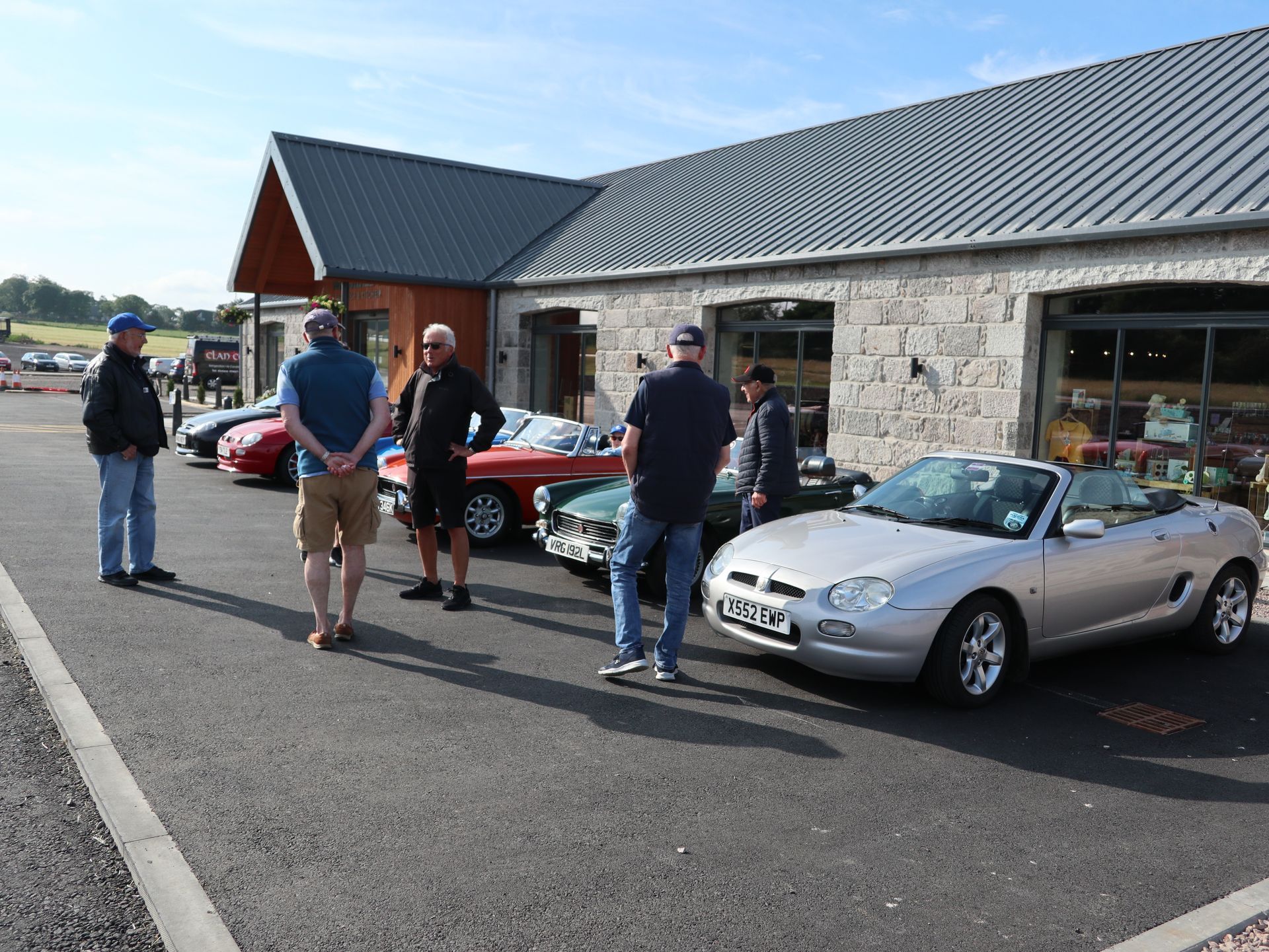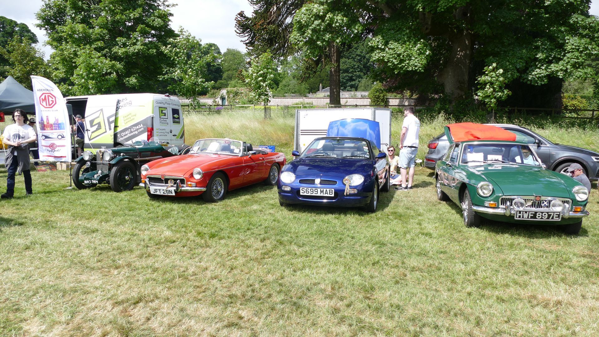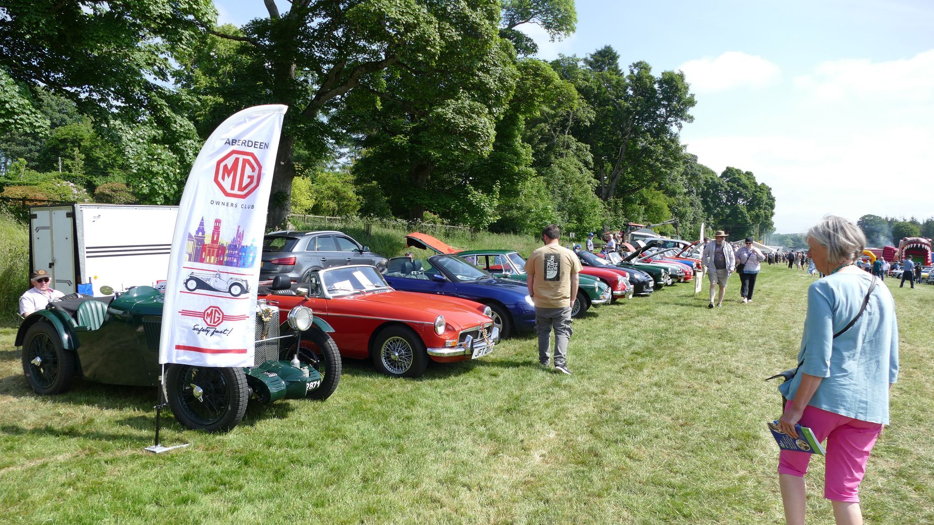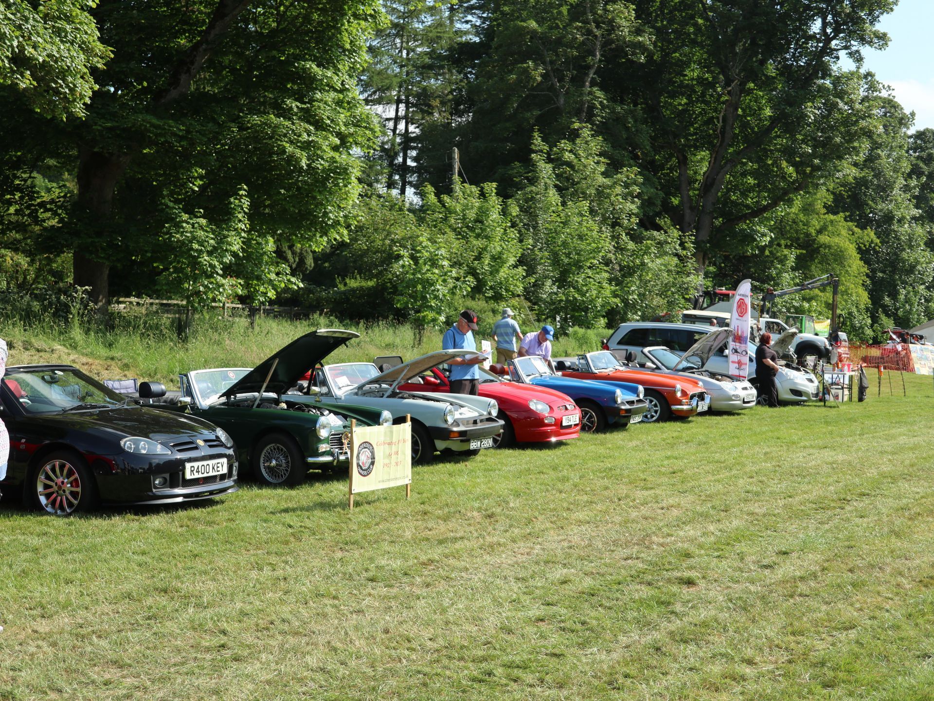Since 2023 is the centenary of MG cars, the club was very generously given free entry to the event by the Chairman of the Bob Accord Steam Engine Club - Jamie Blair - and 14 MGs of various types were proudly displayed on the Club stand, many of us meeting beforehand at Marshall's Farm Shop on the A96 so that we could all arrive together.