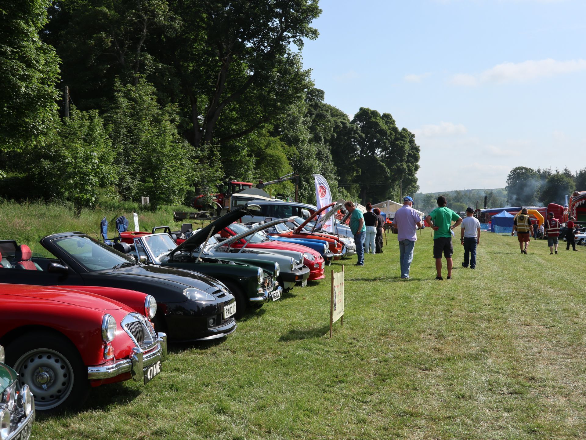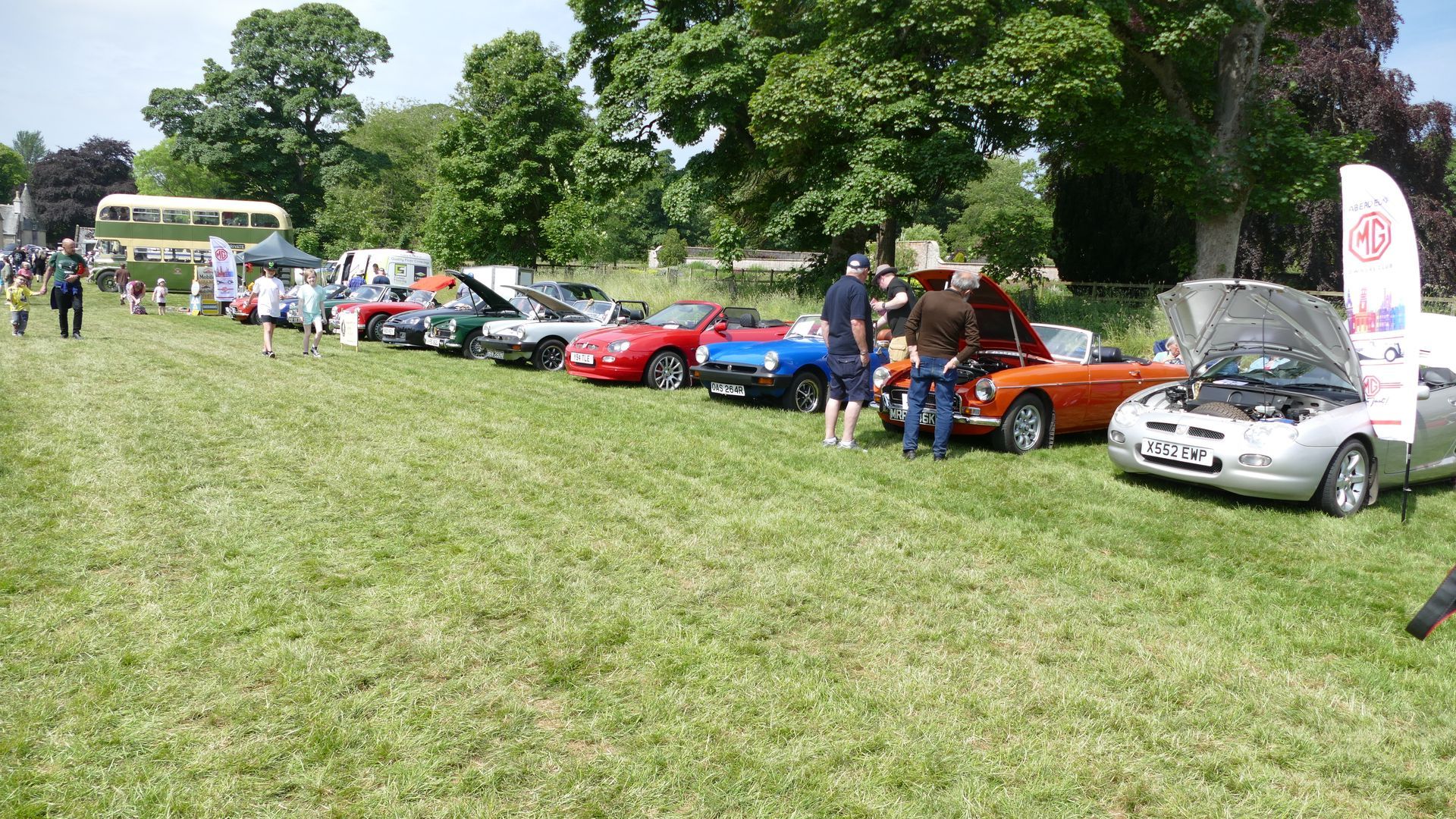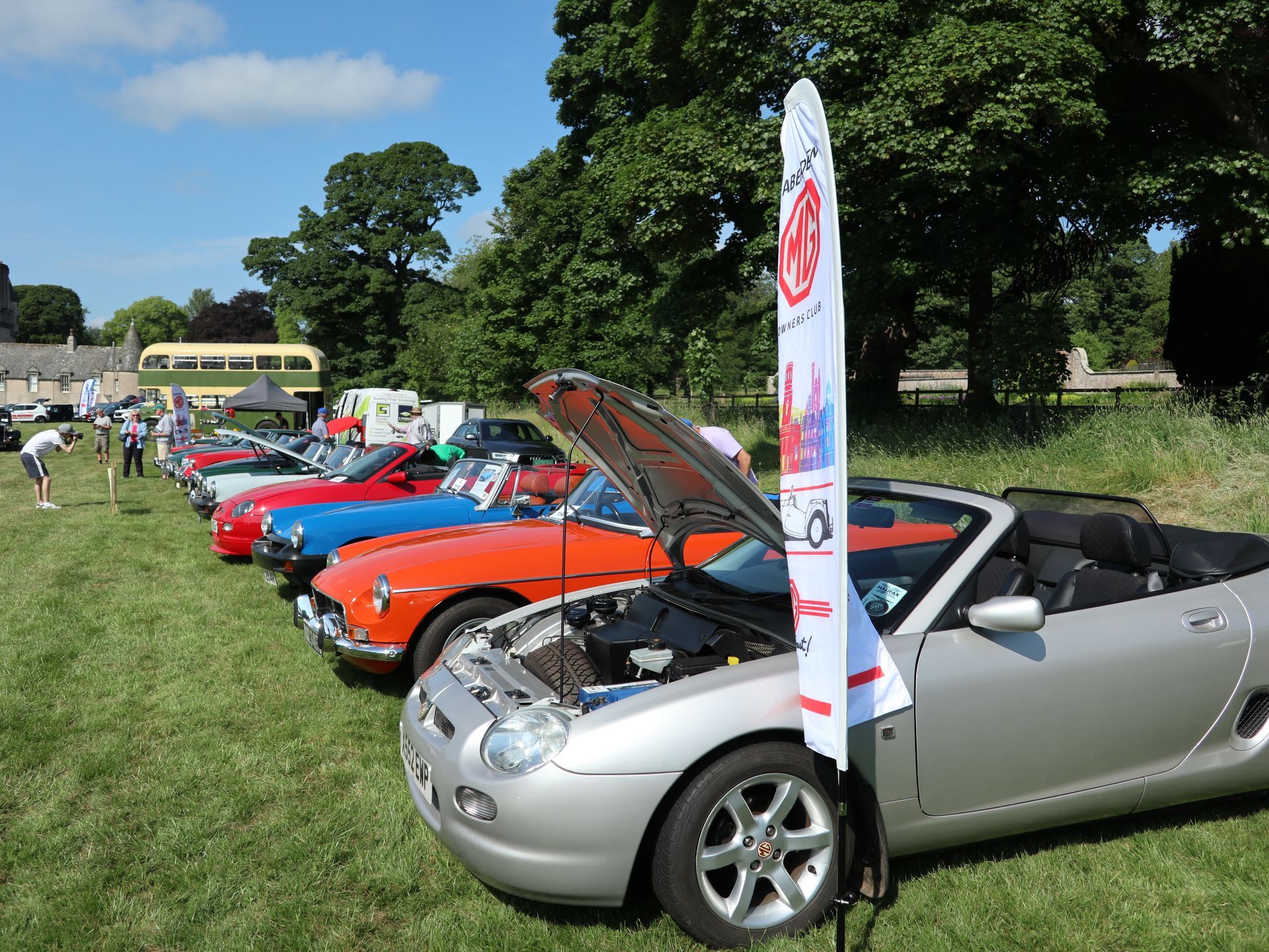 Since 2023 is the centenary of MG cars, the club was very generously given free entry to the event by the Chairman of the Bob Accord Steam Engine Club - Jamie Blair - and 14 MGs of various types were proudly displayed on the Club stand, many of us meeting beforehand at Marshall's Farm Shop on the A96 so that we could all arrive together.