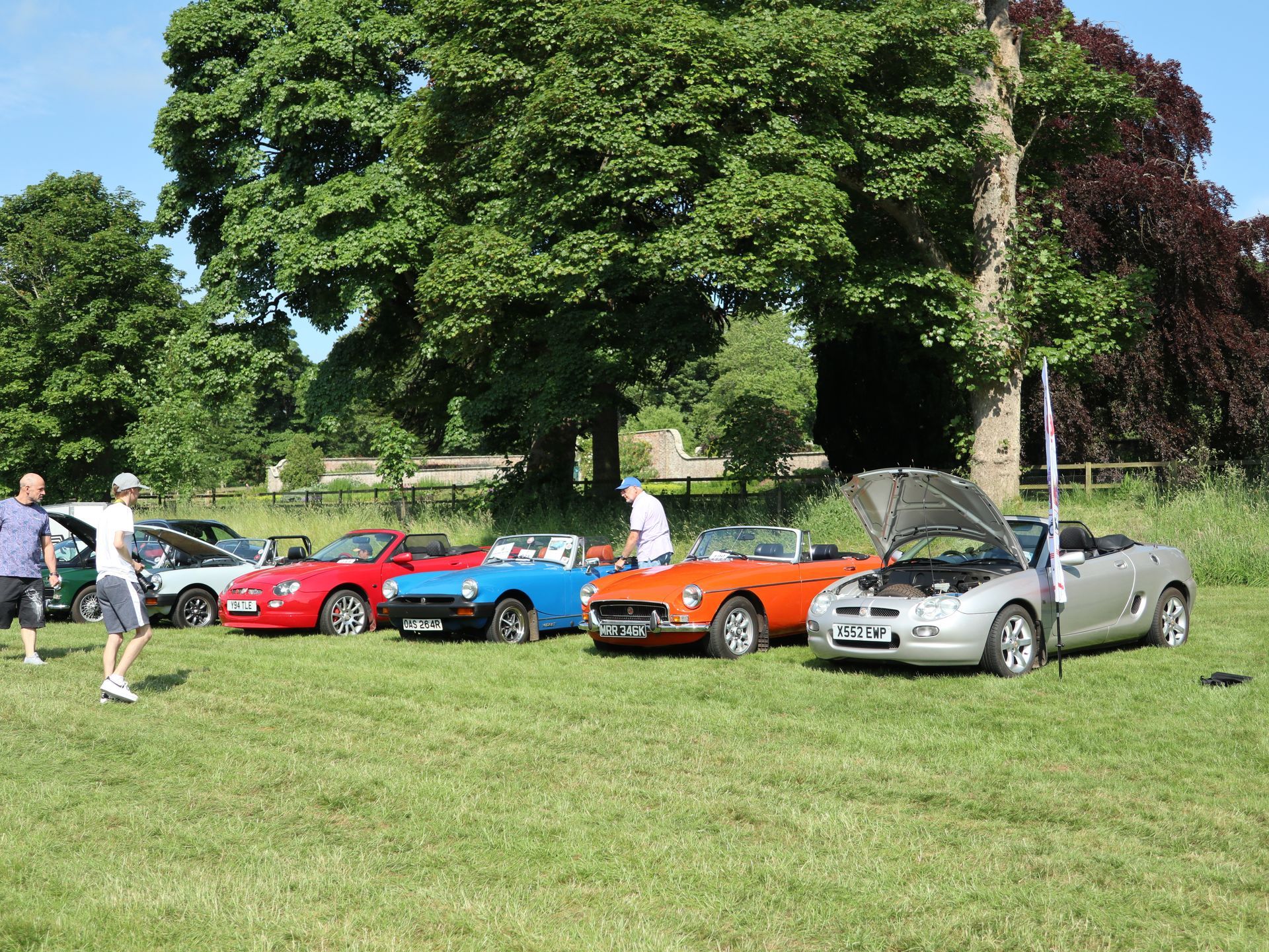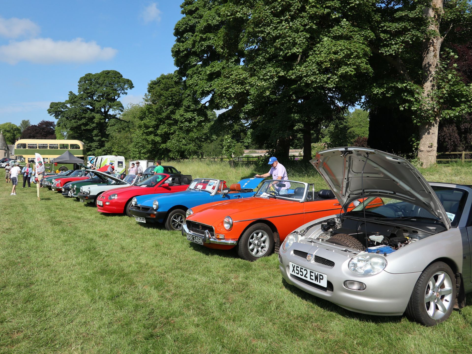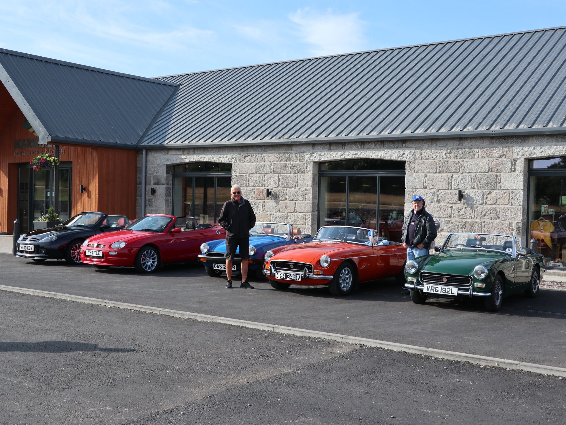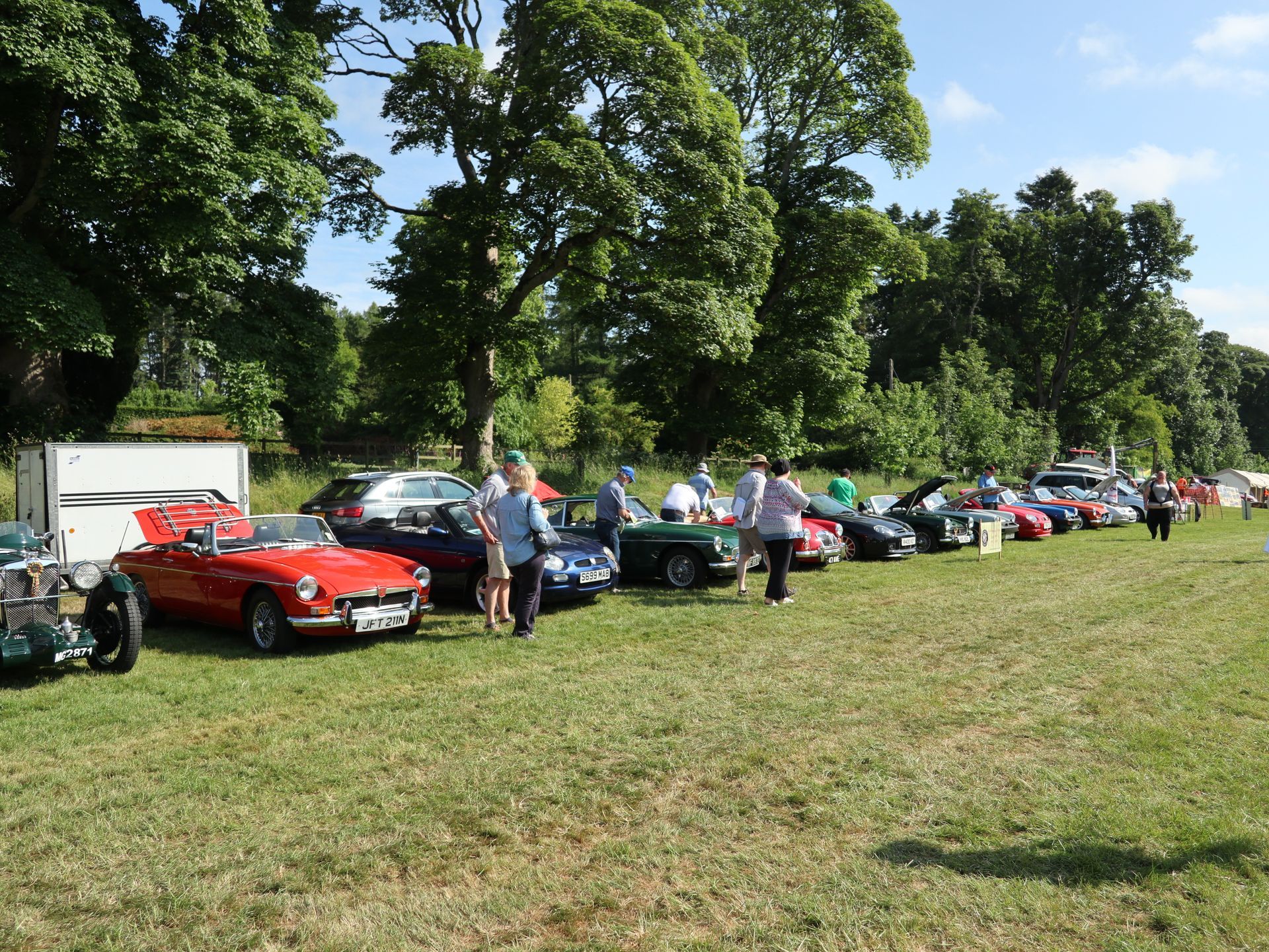 Since 2023 is the centenary of MG cars, the club was very generously given free entry to the event by the Chairman of the Bob Accord Steam Engine Club - Jamie Blair - and 14 MGs of various types were proudly displayed on the Club stand, many of us meeting beforehand at Marshall's Farm Shop on the A96 so that we could all arrive together.