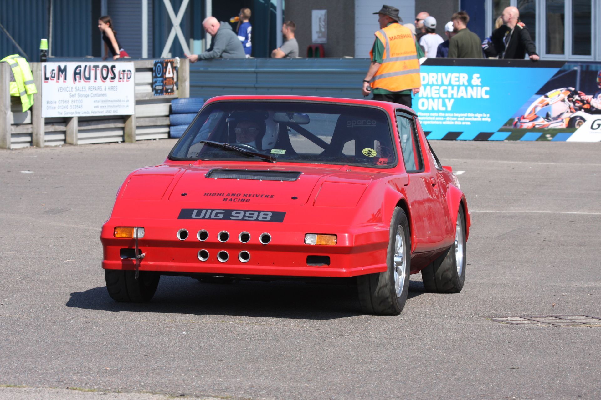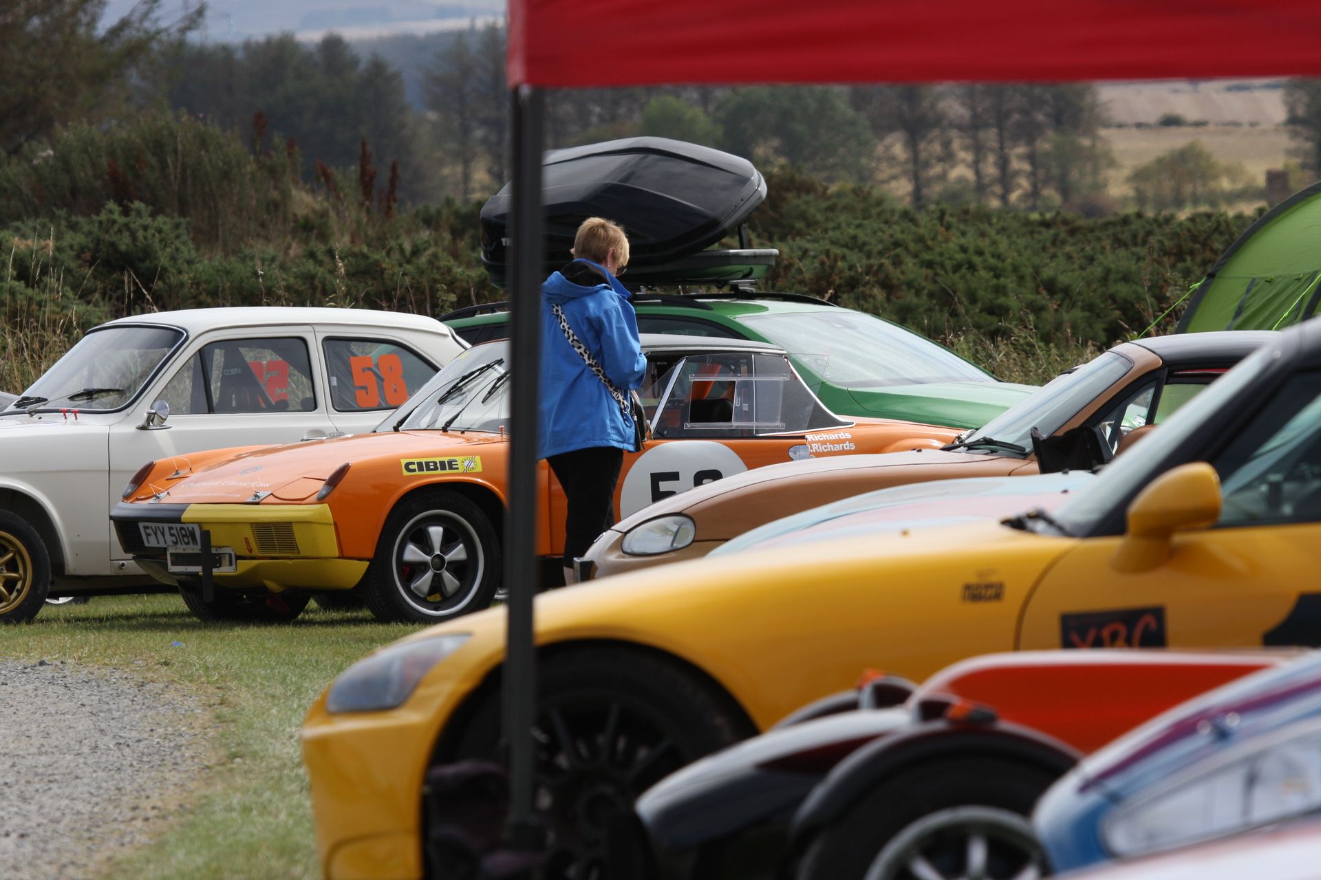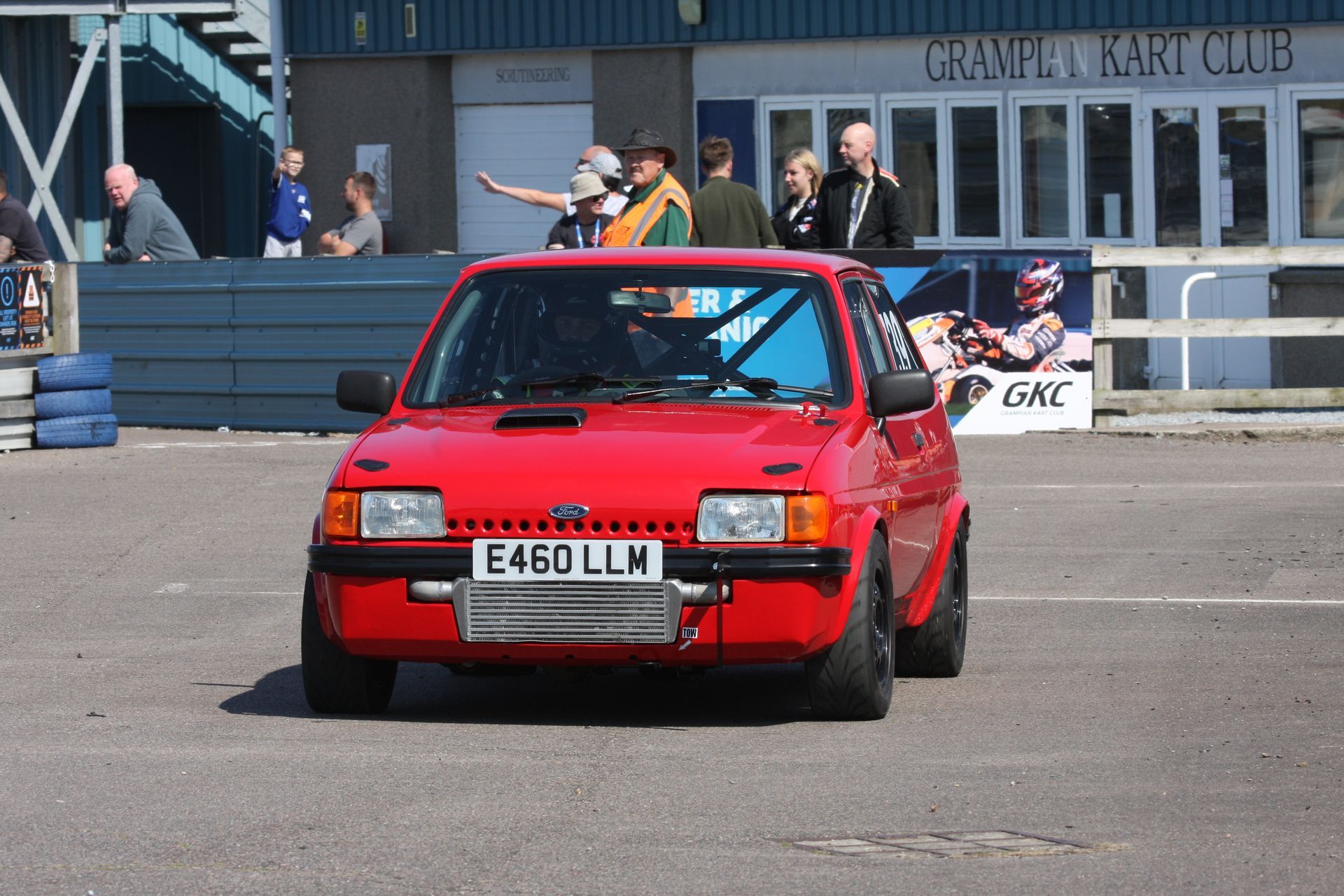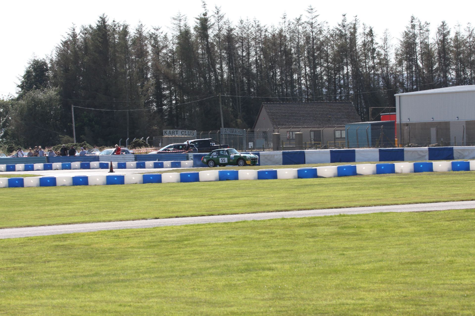 Suitably fed and watered, 8 cars set off on the run to Boyndie. Rather than use main roads, Alistair Thomson led us on a cross country route to the venue and on arrival, we parked in a roped off area specifically for us that John had kindly arranged with the organisers. Just as we arrived, one of the competitors suffered a blown turbo on the circuit and managed to deposit a large amount of oil on the track, and so there was a lengthy delay whilst this was cleared up. There was then a subsequent driver's briefing and a track walk for the drivers to note where the oil had been dumped!