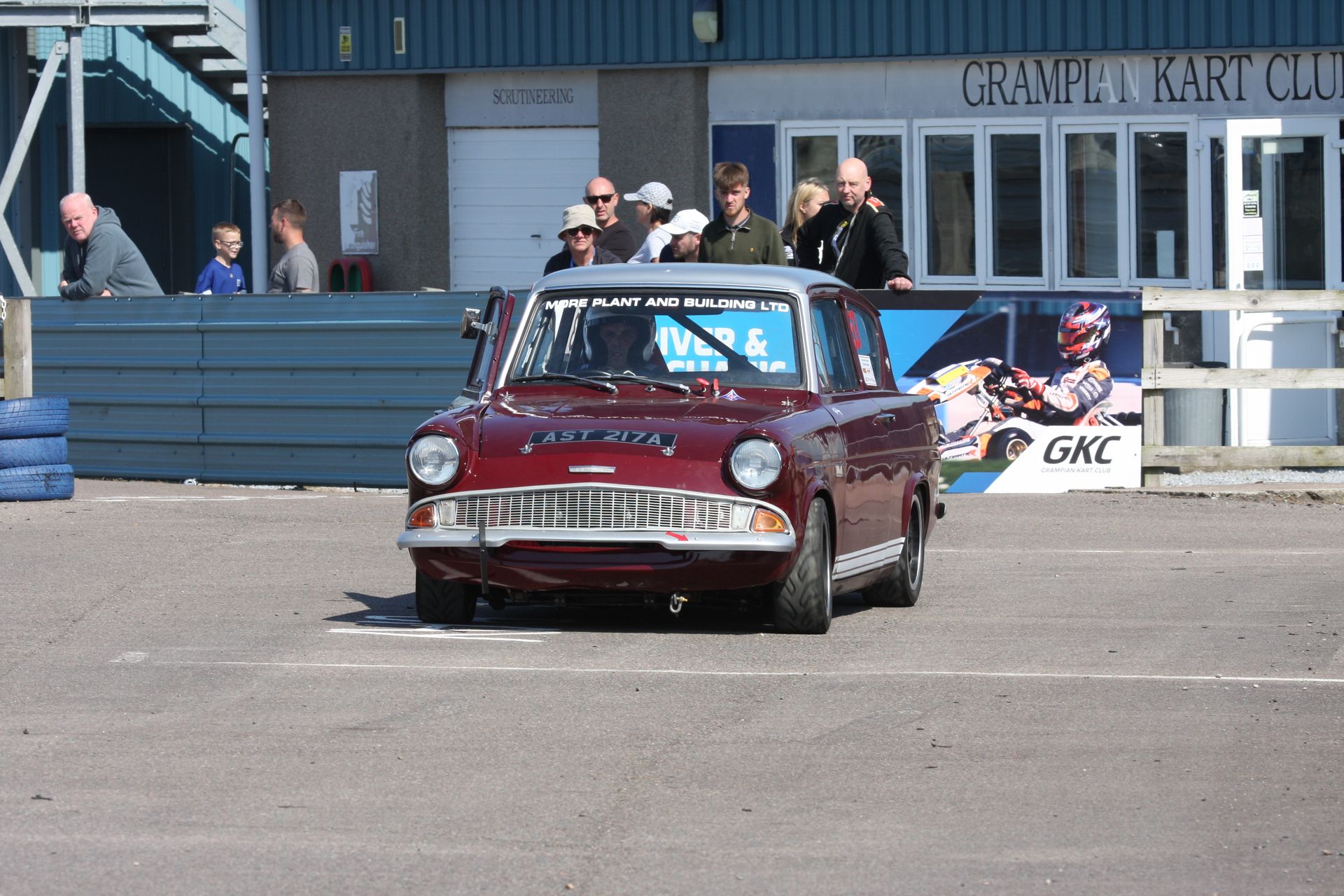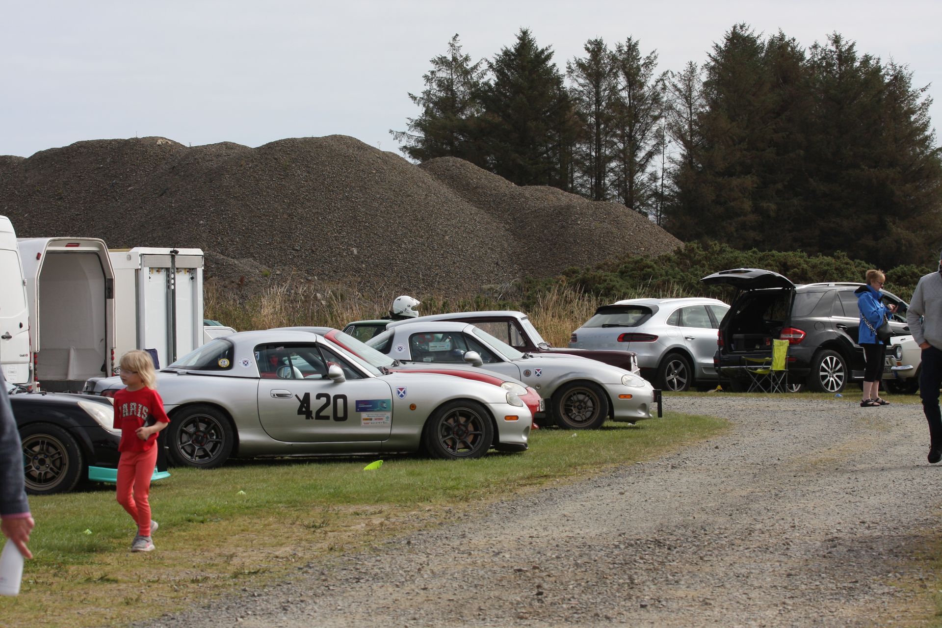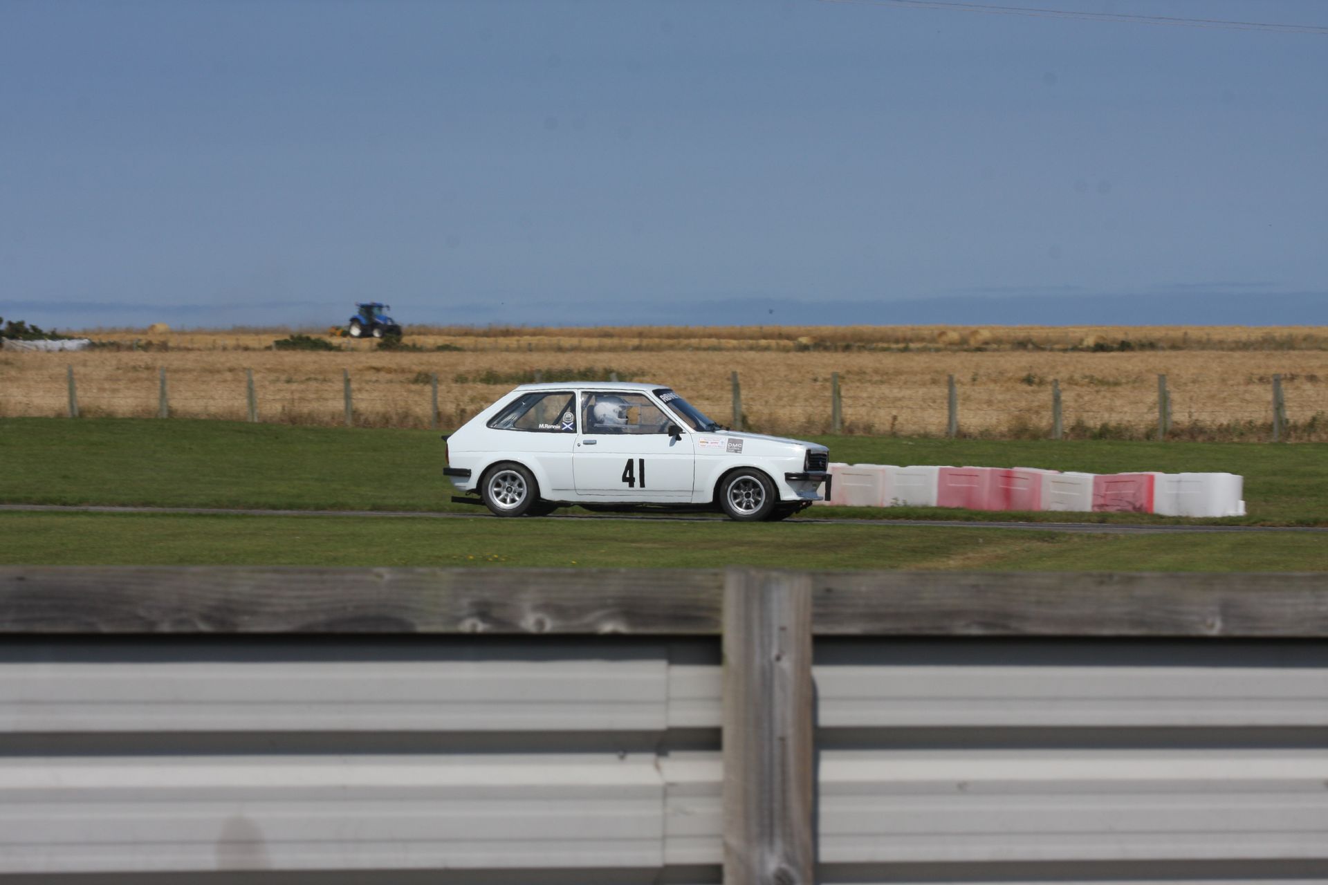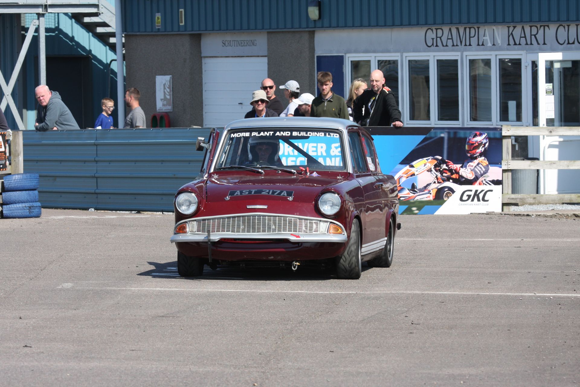 Suitably fed and watered, 8 cars set off on the run to Boyndie. Rather than use main roads, Alistair Thomson led us on a cross country route to the venue and on arrival, we parked in a roped off area specifically for us that John had kindly arranged with the organisers. Just as we arrived, one of the competitors suffered a blown turbo on the circuit and managed to deposit a large amount of oil on the track, and so there was a lengthy delay whilst this was cleared up. There was then a subsequent driver's briefing and a track walk for the drivers to note where the oil had been dumped!