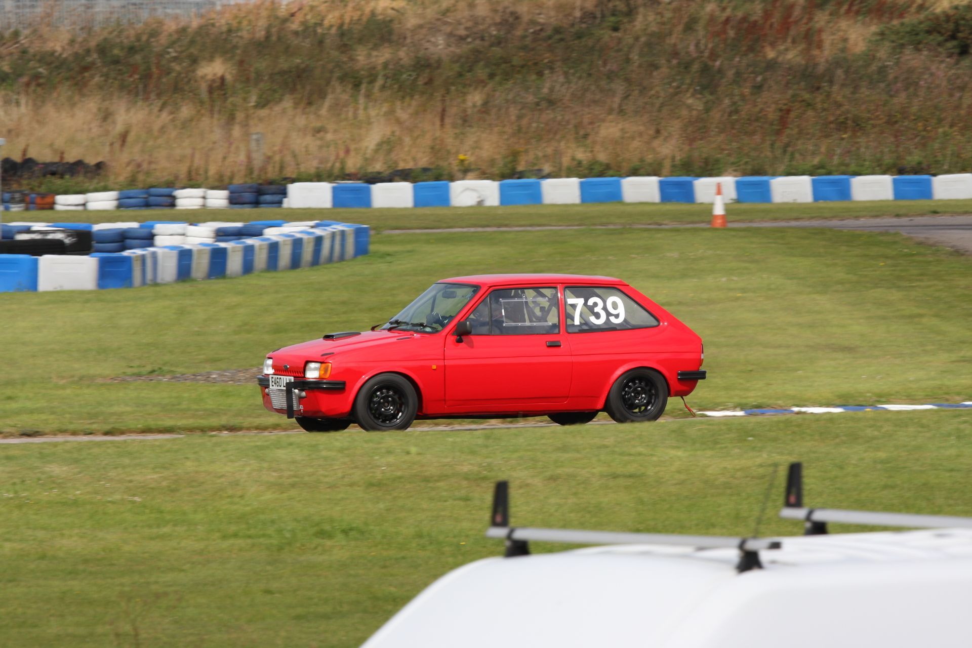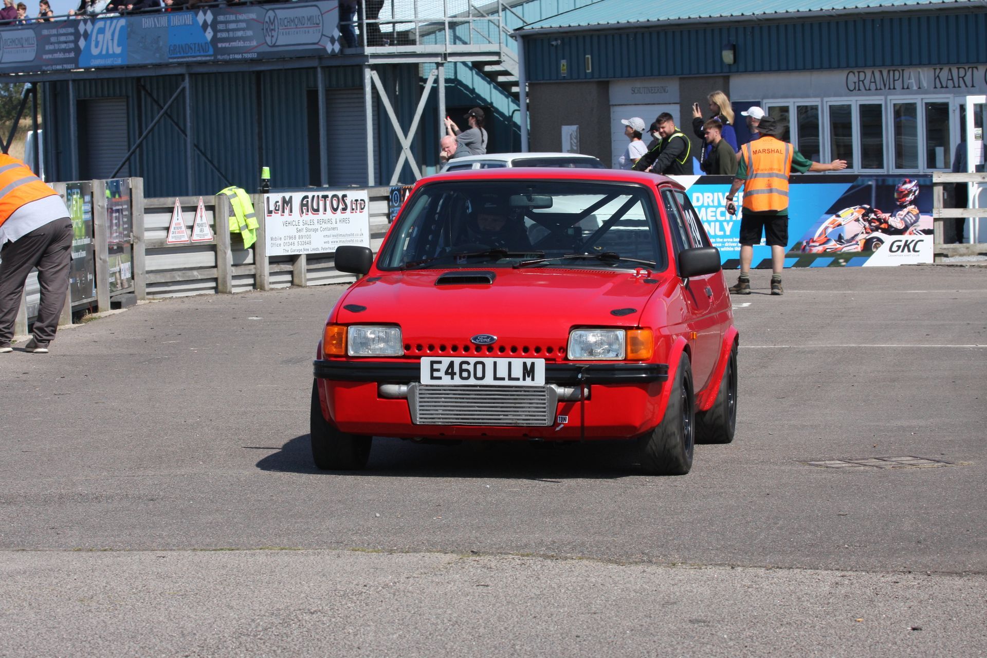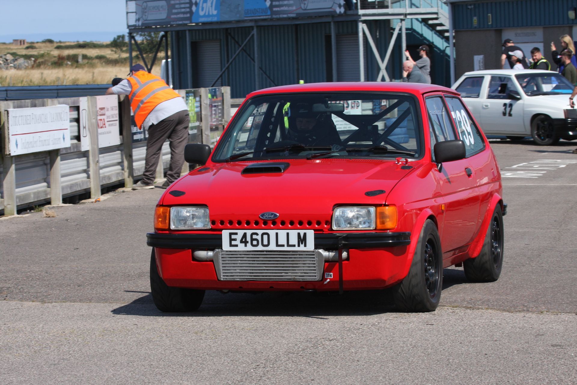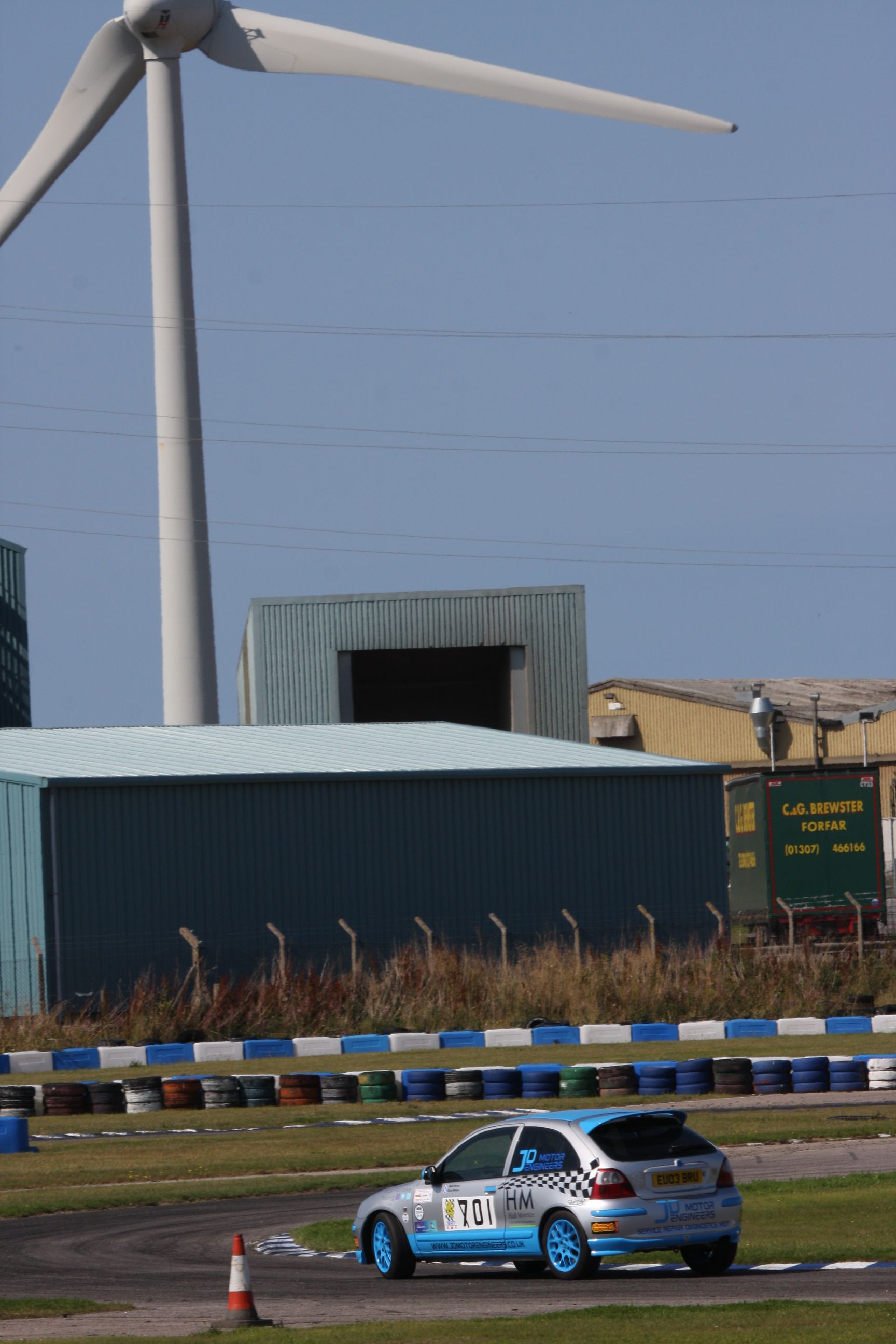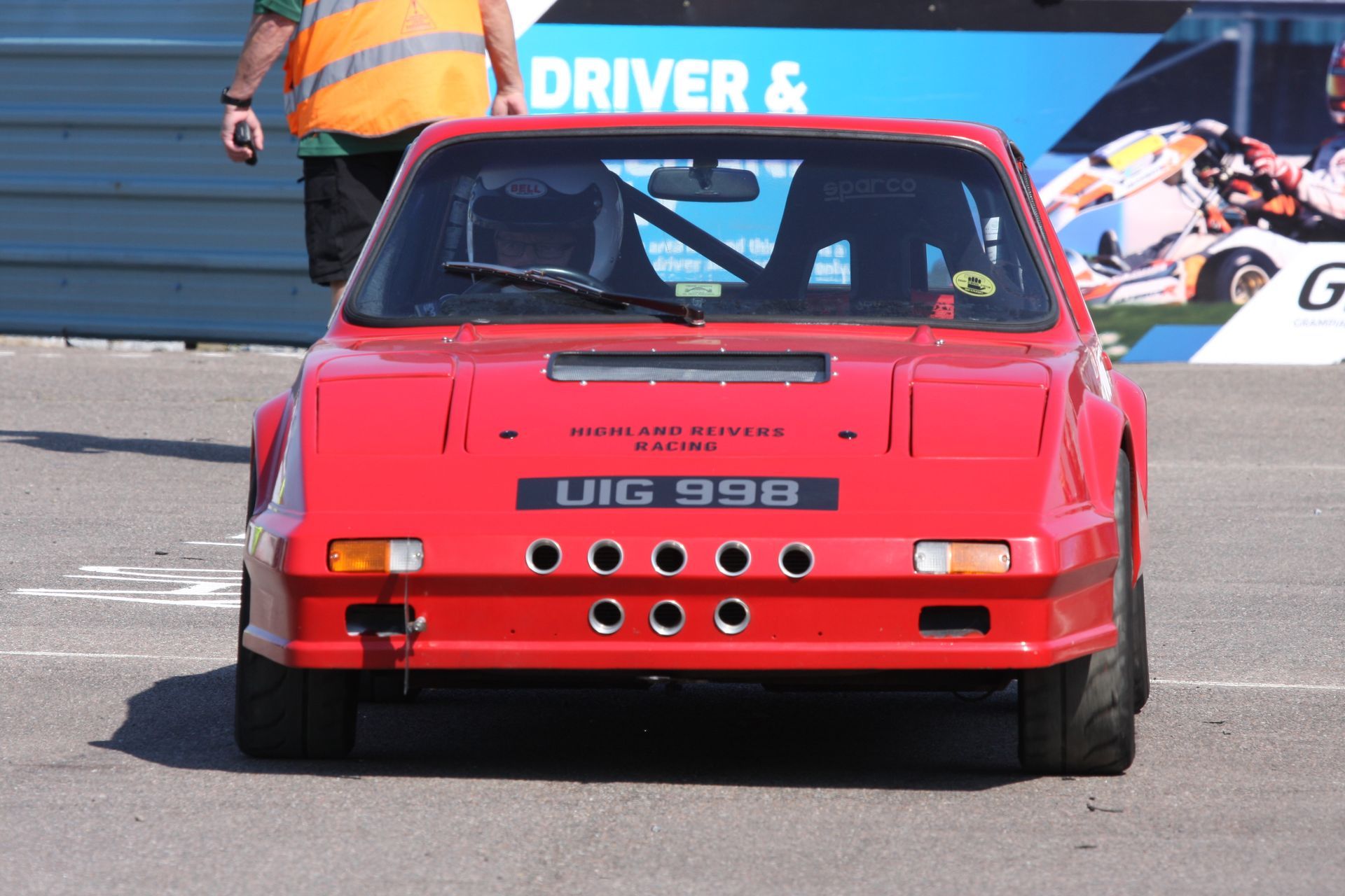 Suitably fed and watered, 8 cars set off on the run to Boyndie. Rather than use main roads, Alistair Thomson led us on a cross country route to the venue and on arrival, we parked in a roped off area specifically for us that John had kindly arranged with the organisers. Just as we arrived, one of the competitors suffered a blown turbo on the circuit and managed to deposit a large amount of oil on the track, and so there was a lengthy delay whilst this was cleared up. There was then a subsequent driver's briefing and a track walk for the drivers to note where the oil had been dumped!