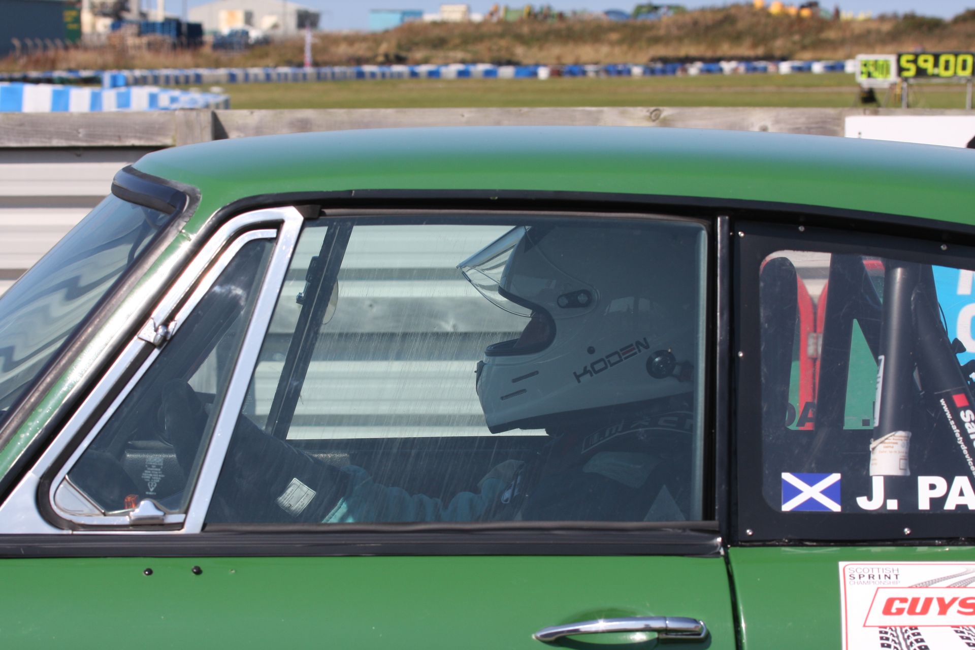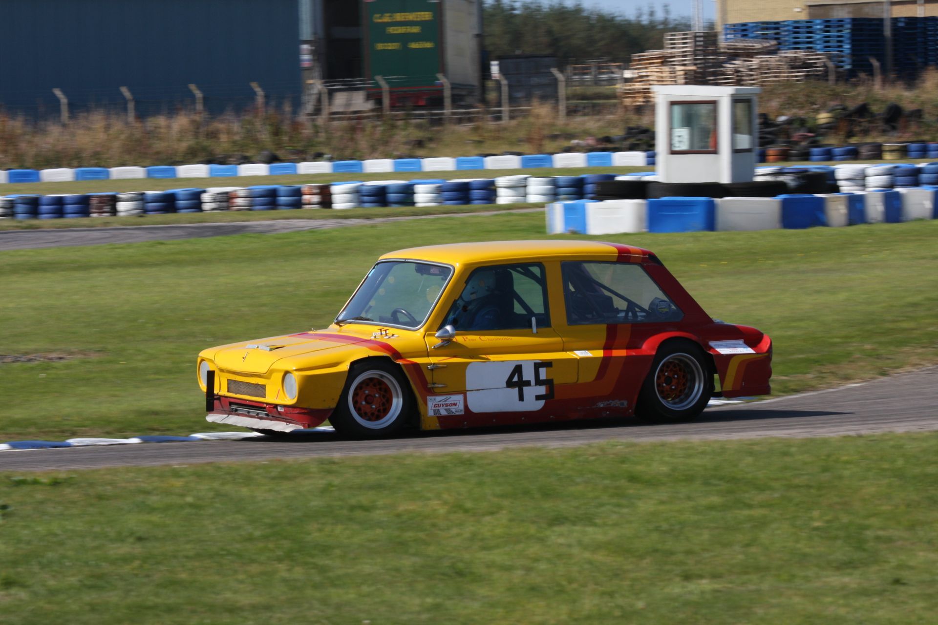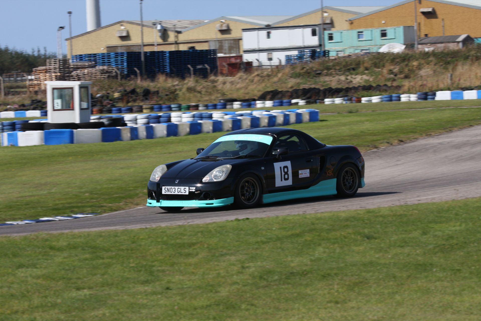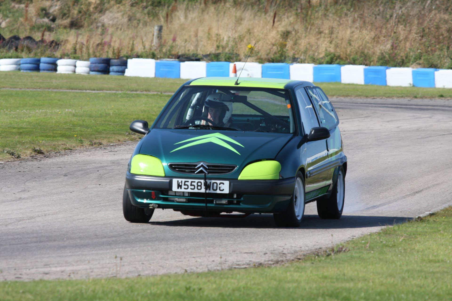 Suitably fed and watered, 8 cars set off on the run to Boyndie. Rather than use main roads, Alistair Thomson led us on a cross country route to the venue and on arrival, we parked in a roped off area specifically for us that John had kindly arranged with the organisers. Just as we arrived, one of the competitors suffered a blown turbo on the circuit and managed to deposit a large amount of oil on the track, and so there was a lengthy delay whilst this was cleared up. There was then a subsequent driver's briefing and a track walk for the drivers to note where the oil had been dumped!