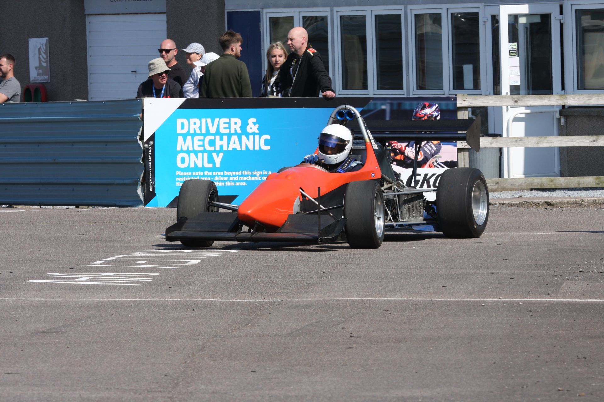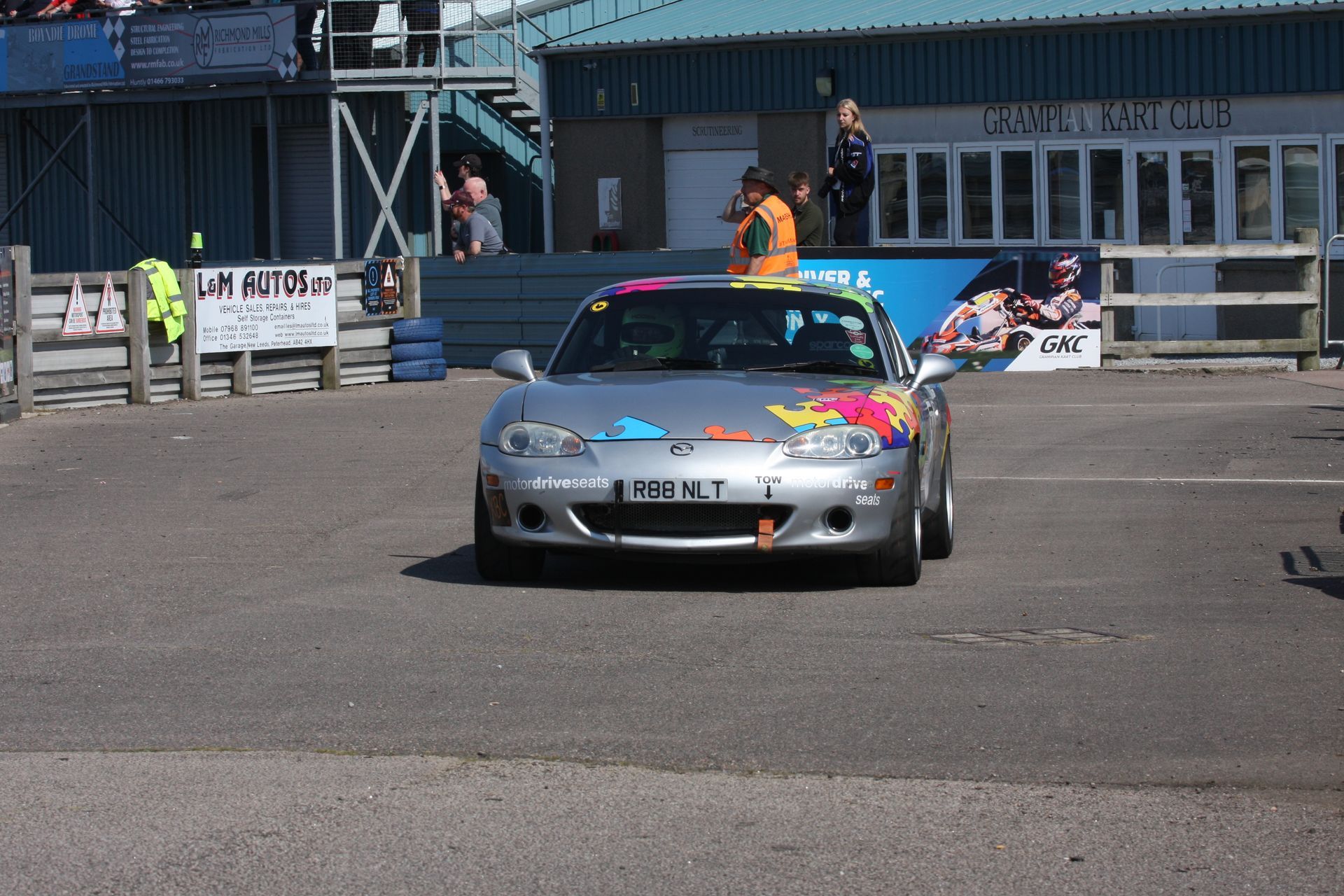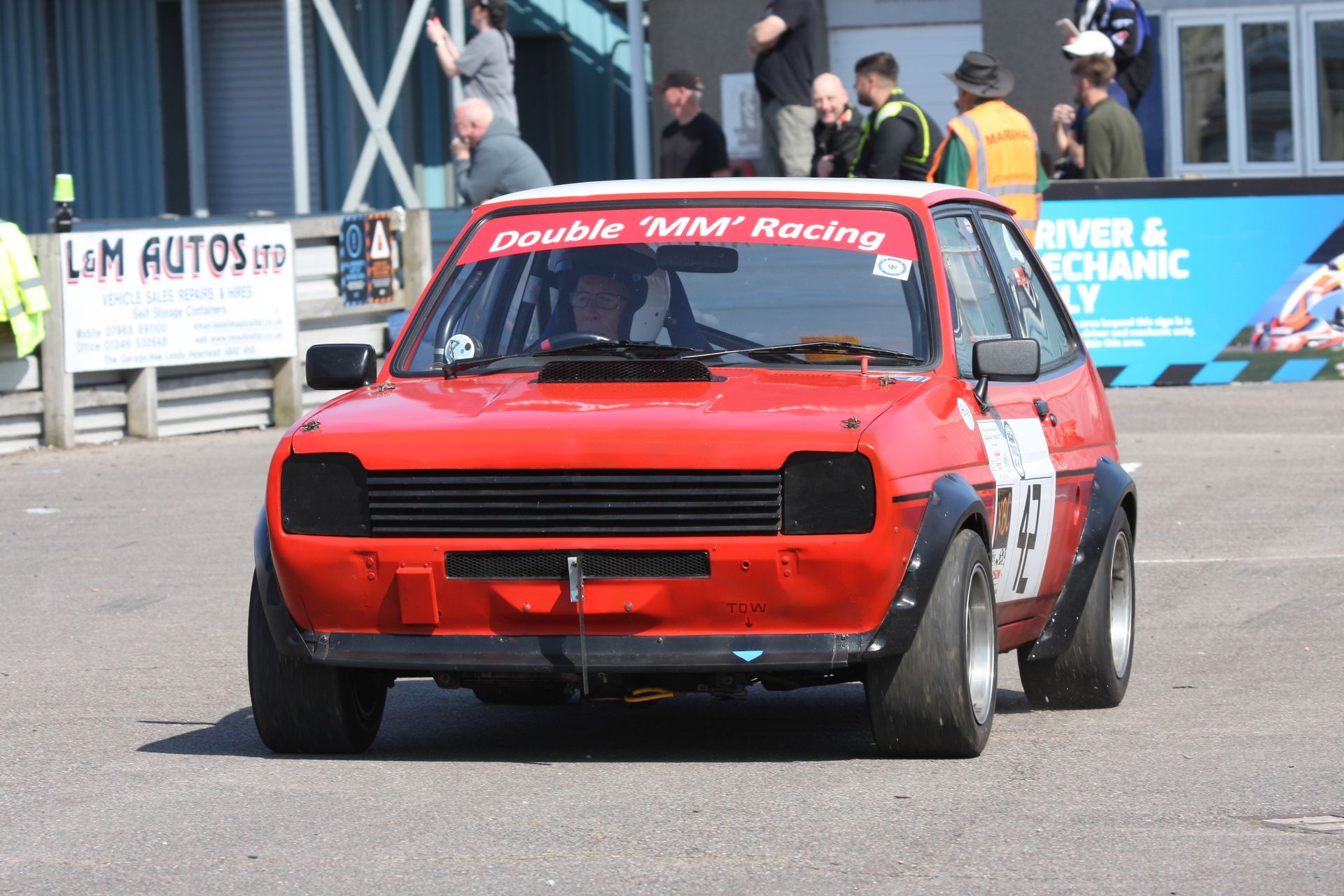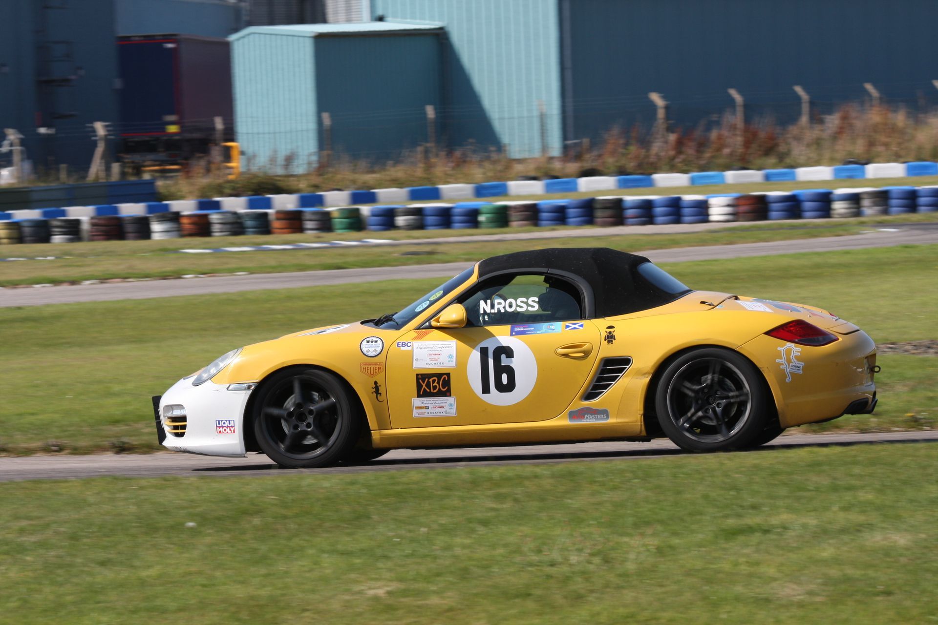 Suitably fed and watered, 8 cars set off on the run to Boyndie. Rather than use main roads, Alistair Thomson led us on a cross country route to the venue and on arrival, we parked in a roped off area specifically for us that John had kindly arranged with the organisers. Just as we arrived, one of the competitors suffered a blown turbo on the circuit and managed to deposit a large amount of oil on the track, and so there was a lengthy delay whilst this was cleared up. There was then a subsequent driver's briefing and a track walk for the drivers to note where the oil had been dumped!