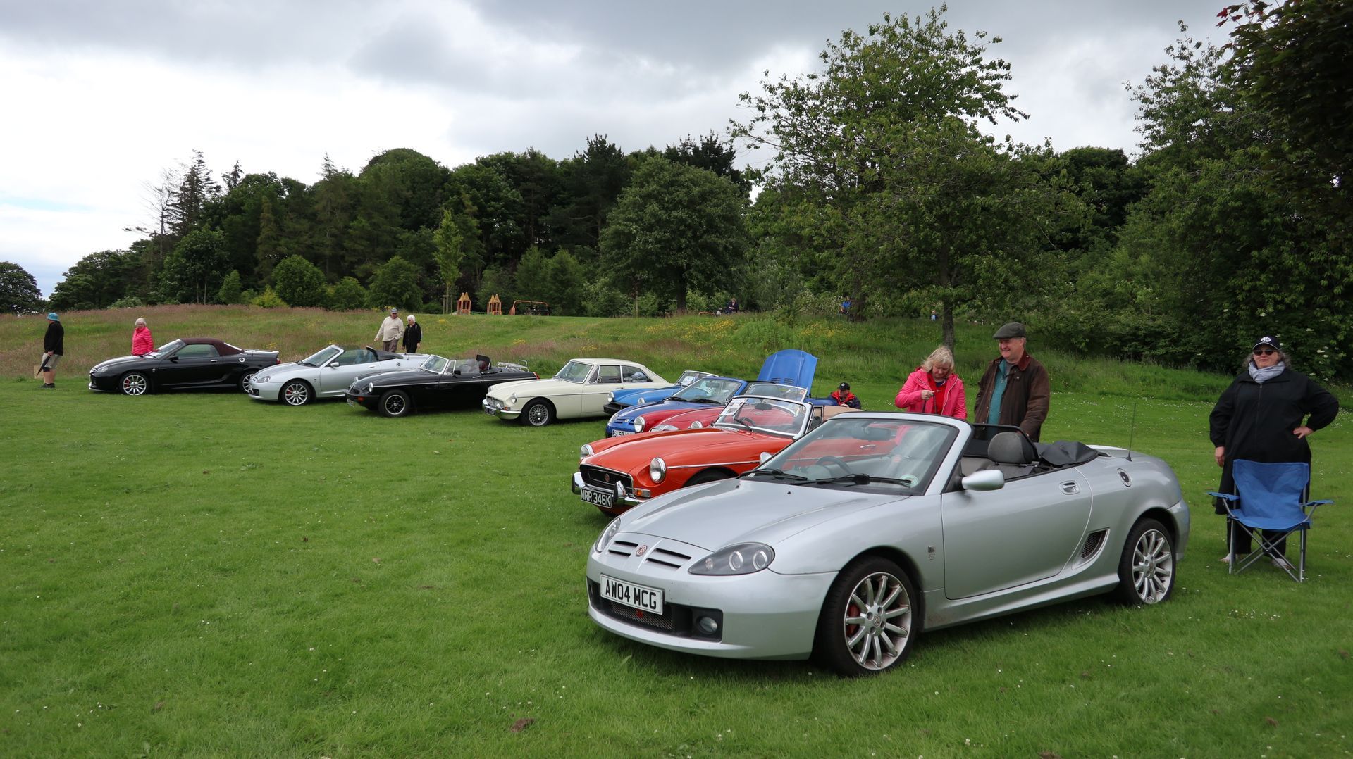 9 Club members made their way to Mineralwell Park Stonehaven on Sunday 30th June to take part in the R W Thomson Memorial Rally. For reasons unknown, we were located on a hill overlooking the field rather than being in the 'thick of it'.