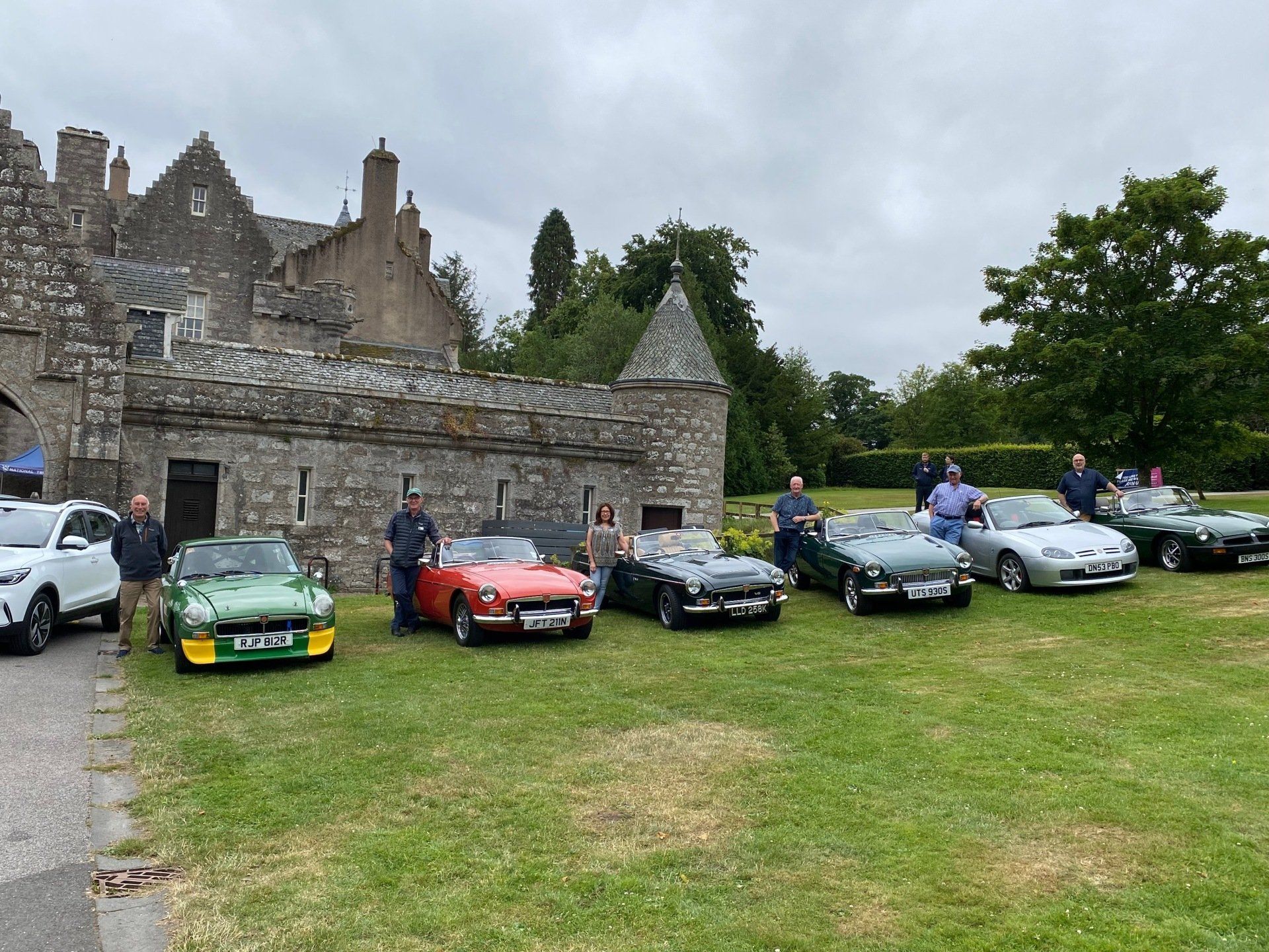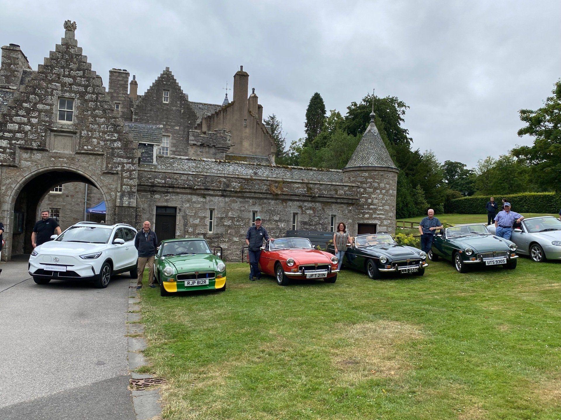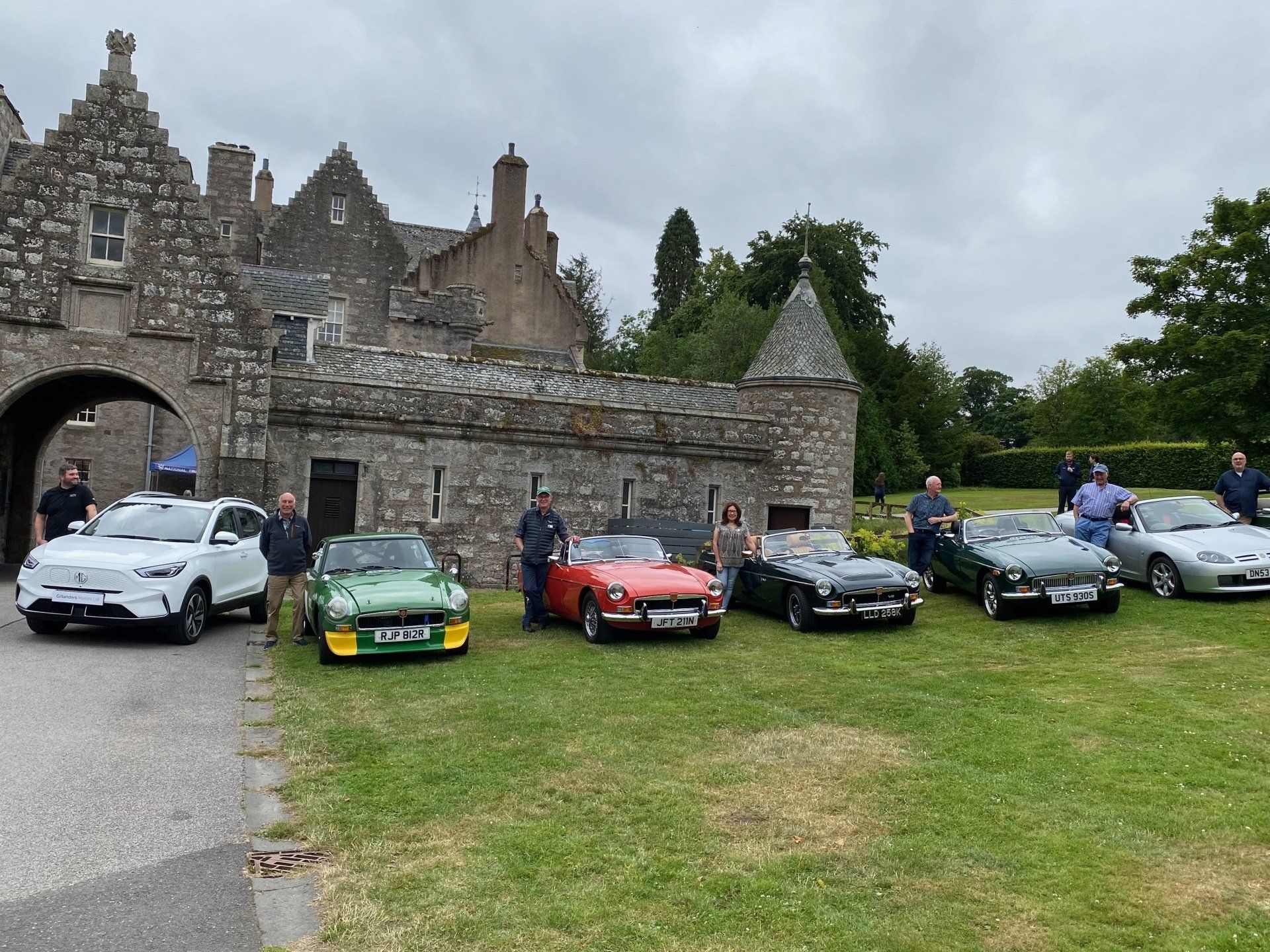 We are delighted to announce that our Annual Show at Drum is being supported by Gillanders Motors of Ker-An House, Wellington Circle, Aberdeen and on Friday 22nd July, they kindly brought along 2 current MG models to join the 13 classic MGs that had assembled at Drum Castle for a pre- event photo shoot. Unfortunately the P&J Photographer got stuck on another job and was ultimately unable to attend, and so all we had with us was a number of phone cameras! Nonetheless, we managed to get some good pictures and have submitted a selection to the P&J.