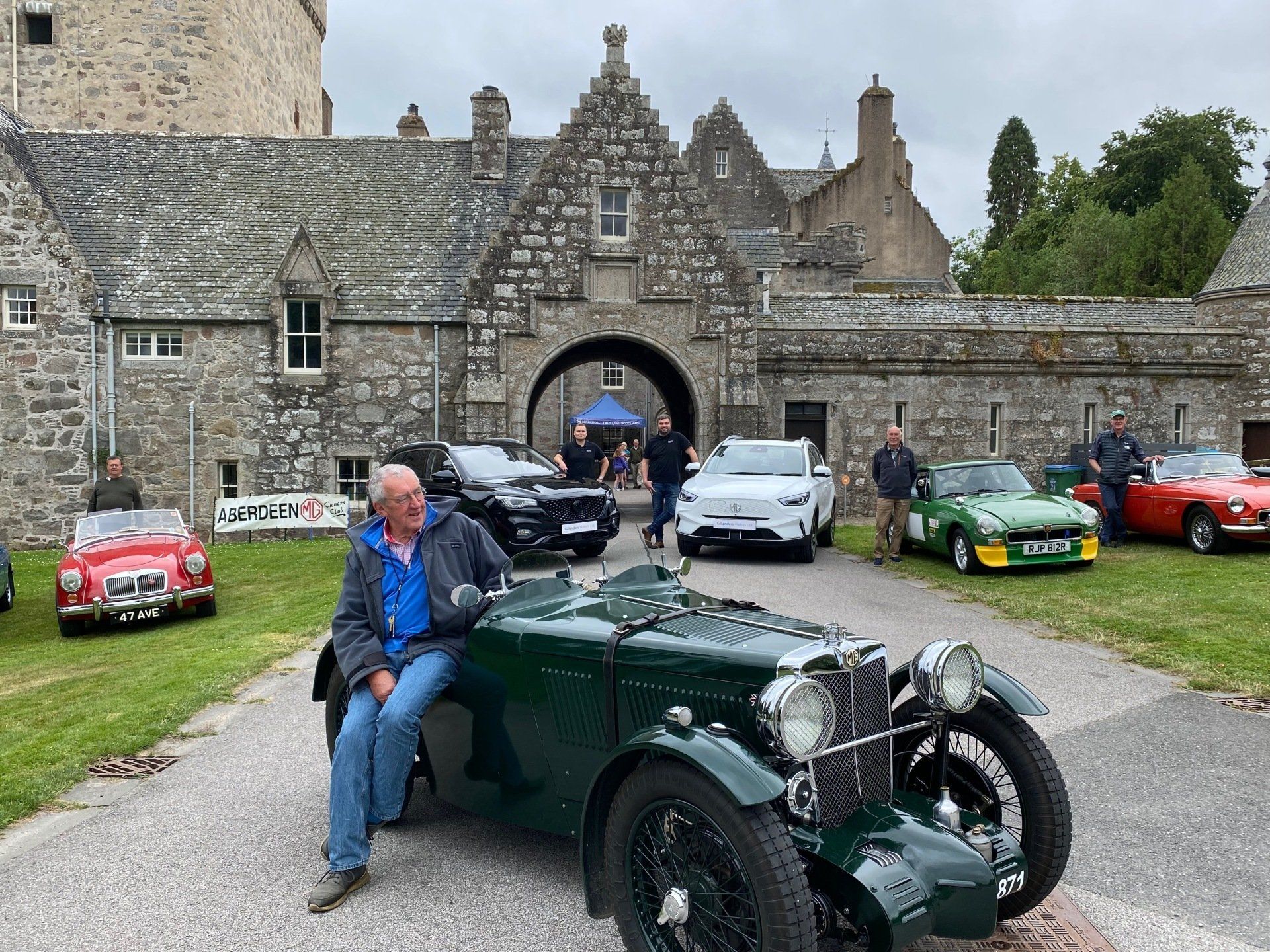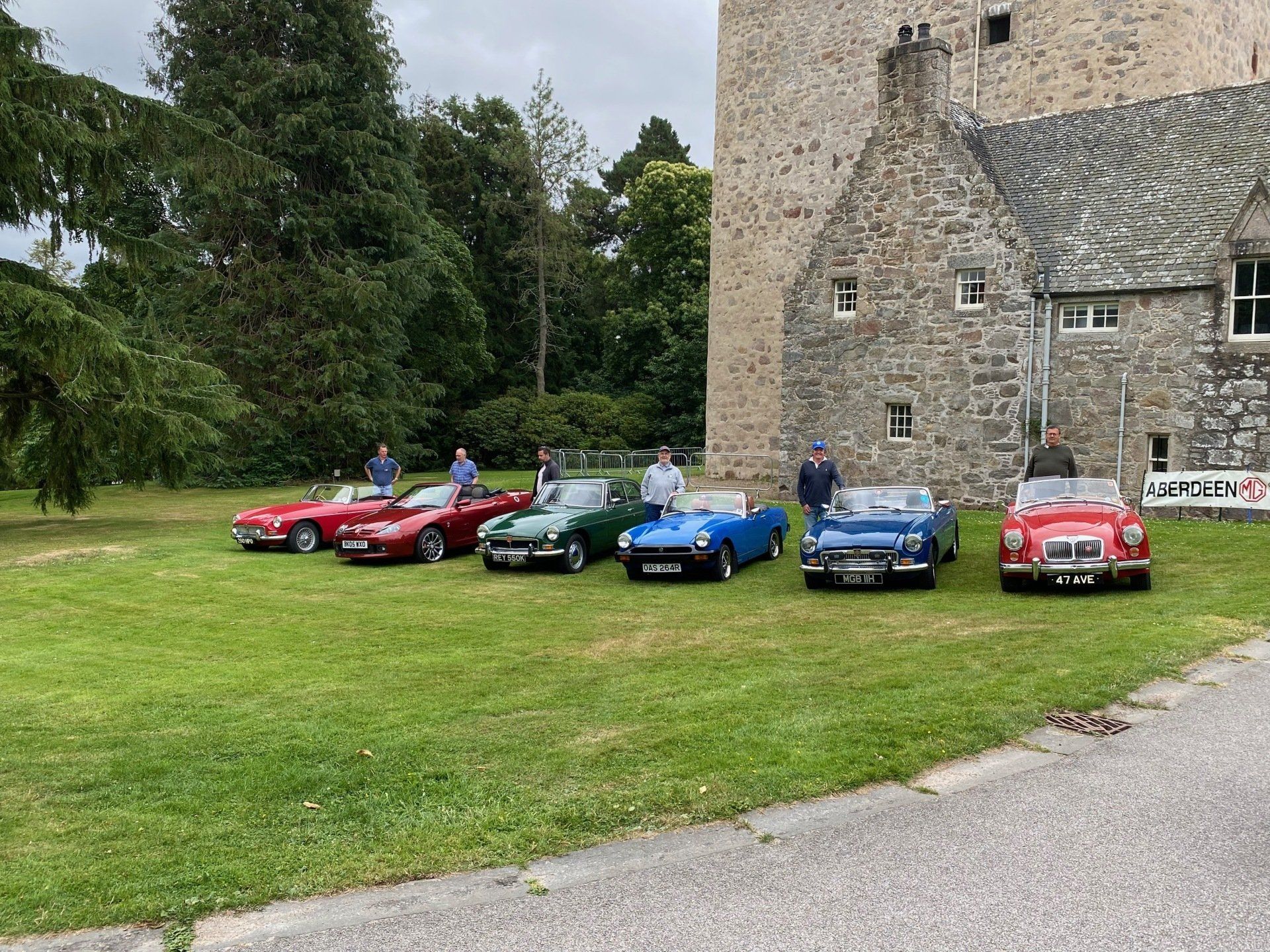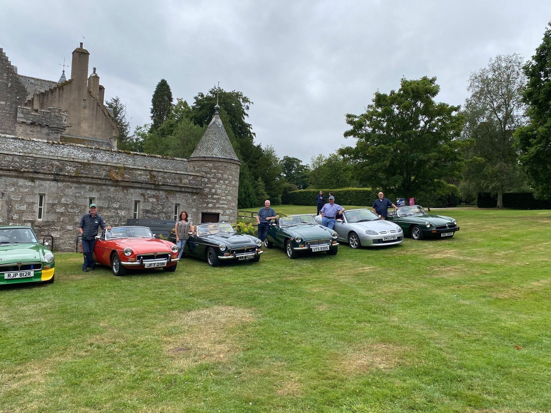 We are delighted to announce that our Annual Show at Drum is being supported by Gillanders Motors of Ker-An House, Wellington Circle, Aberdeen and on Friday 22nd July, they kindly brought along 2 current MG models to join the 13 classic MGs that had assembled at Drum Castle for a pre- event photo shoot. Unfortunately the P&J Photographer got stuck on another job and was ultimately unable to attend, and so all we had with us was a number of phone cameras! Nonetheless, we managed to get some good pictures and have submitted a selection to the P&J.
