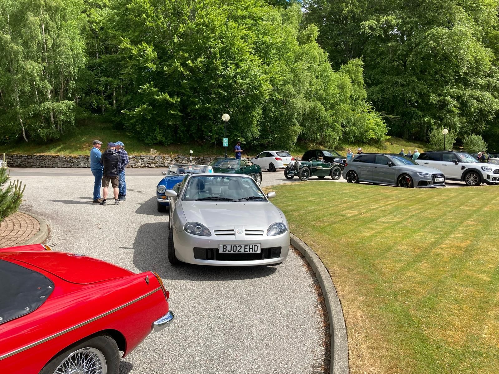 A few members attended the event on the Saturday but around 15 club cars were present on the Sunday which was mainly sunny, but sadly interrupted by some short sharp showers. Sadly this meant that a number of entrants were 'no shows' which left a few empty spaces on the field. Members of the Aberdeen MGOC are much more hardy though and all who entered turned up and sought shelter in the club gazebo when the heavens opened. The weather also meant that some of the planned entertainment also did not materialise and we were asked to do a short parade in the arena to fill a gap - thanks to Anita for the short video below.
