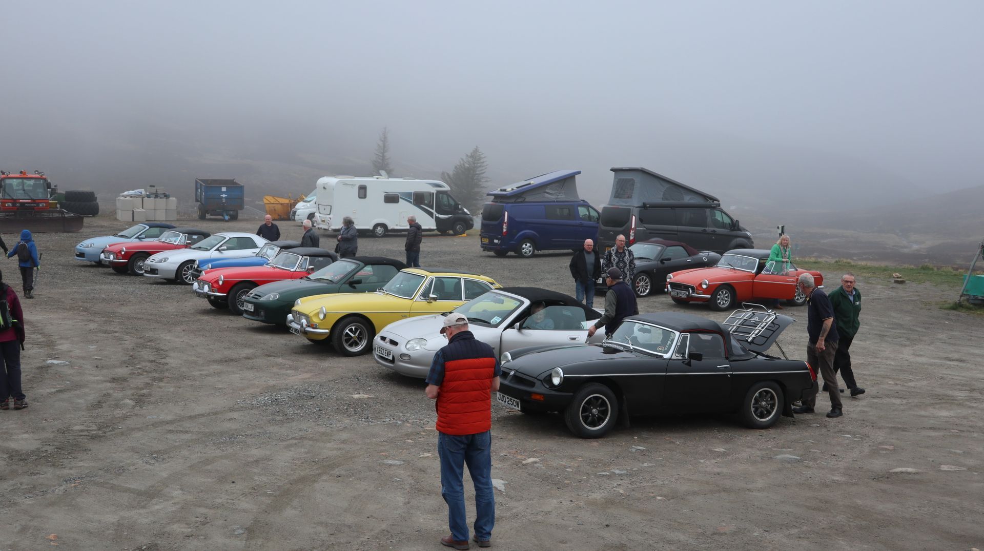Our second road run of the year was a very scenic but partially obscured trip through the Angus Glens which was brilliantly organised by Roger and Margaret Key. A date change due to other commitments meant that we weren’t able to give members as much notice as normal, but nonetheless 11 cars arrived at the Castleton Farm Shop for breakfast just before 09:00 on 'Star Wars Day' in reasonably thick fog!