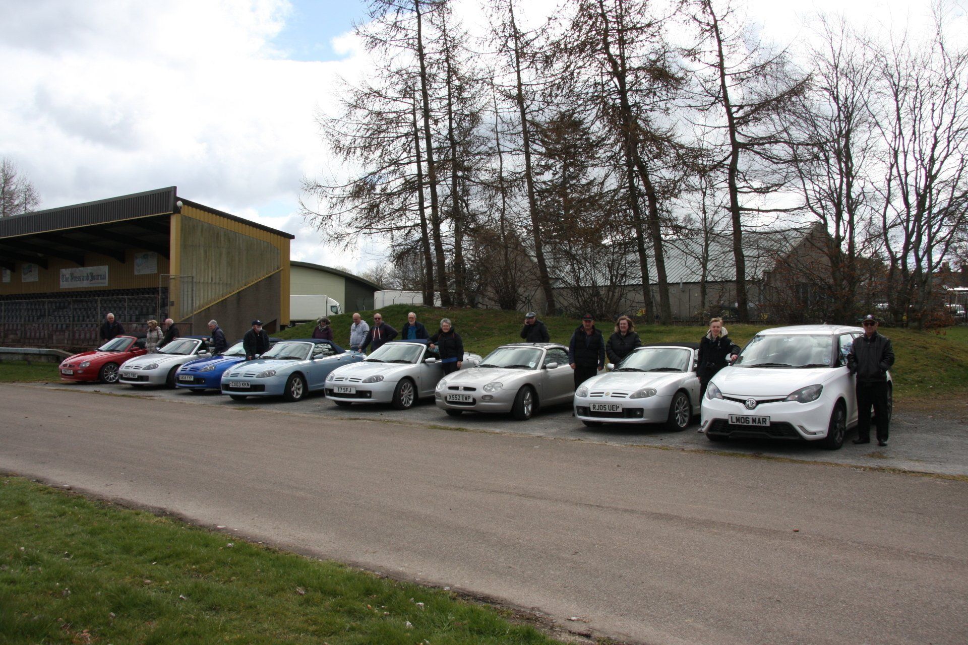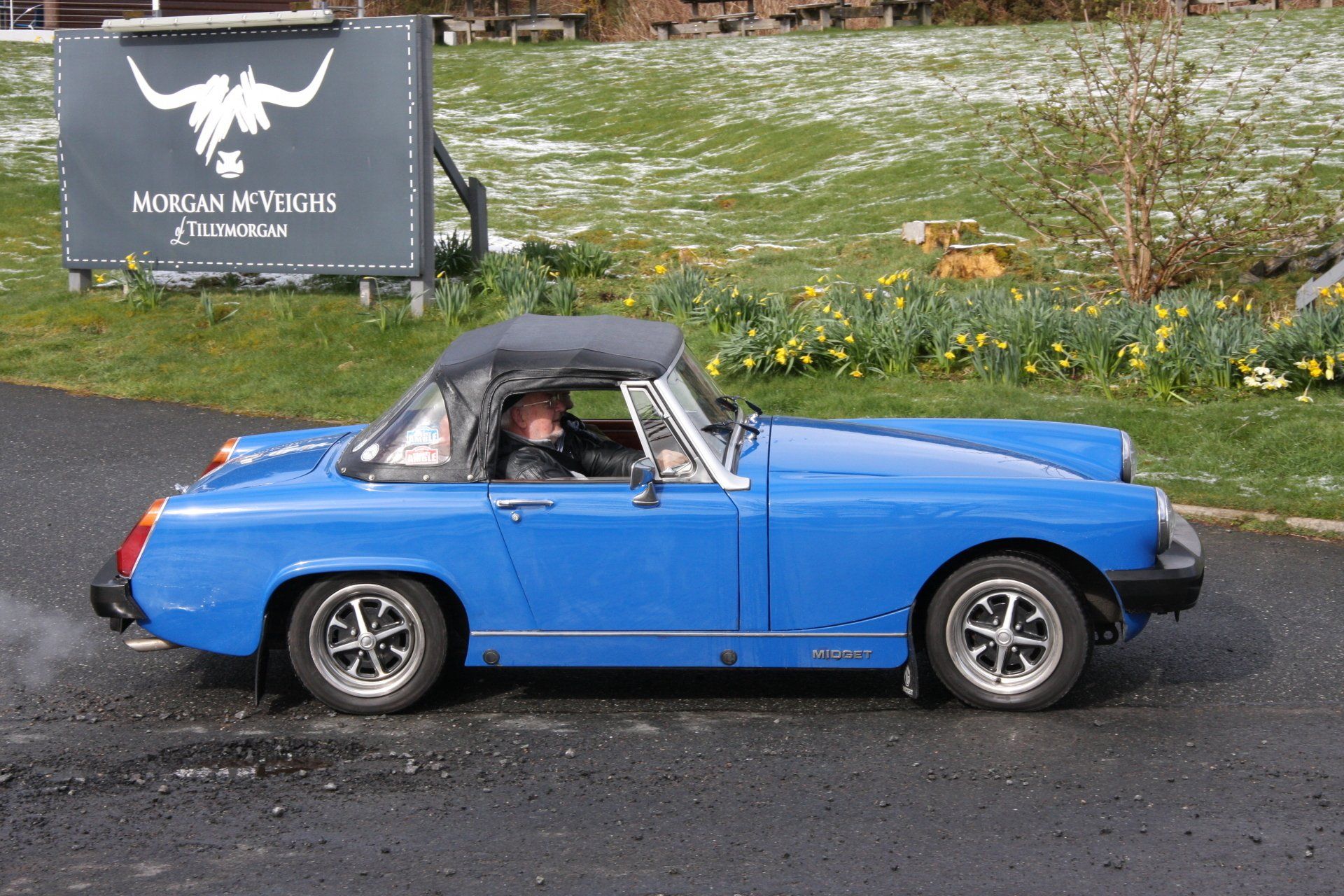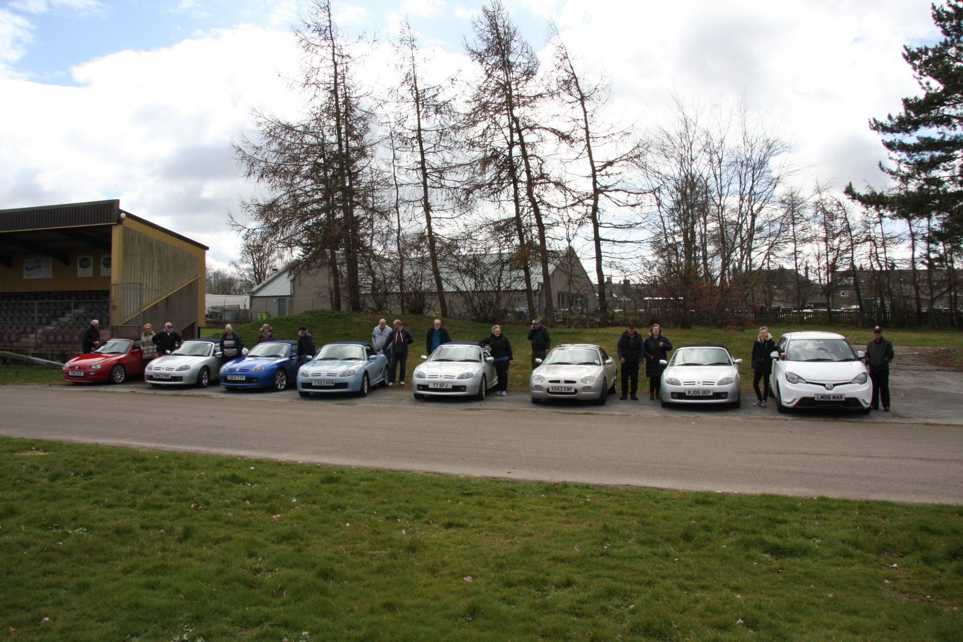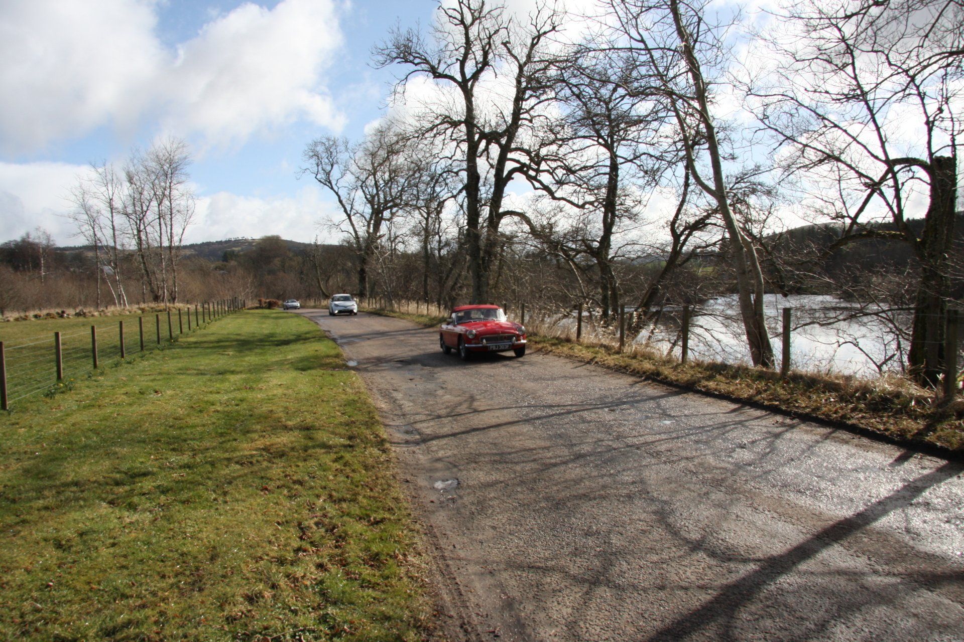 Luckily though, Saturday 9th dawned bright and sunny and although it was still quite cold, a healthy 15 cars congregated at Morgan McVeigh’s for a coffee and a bacon roll before heading off to Huntly for the start of the 2022 ‘Warm Up’ run. Curiously, all the roofs were up…..