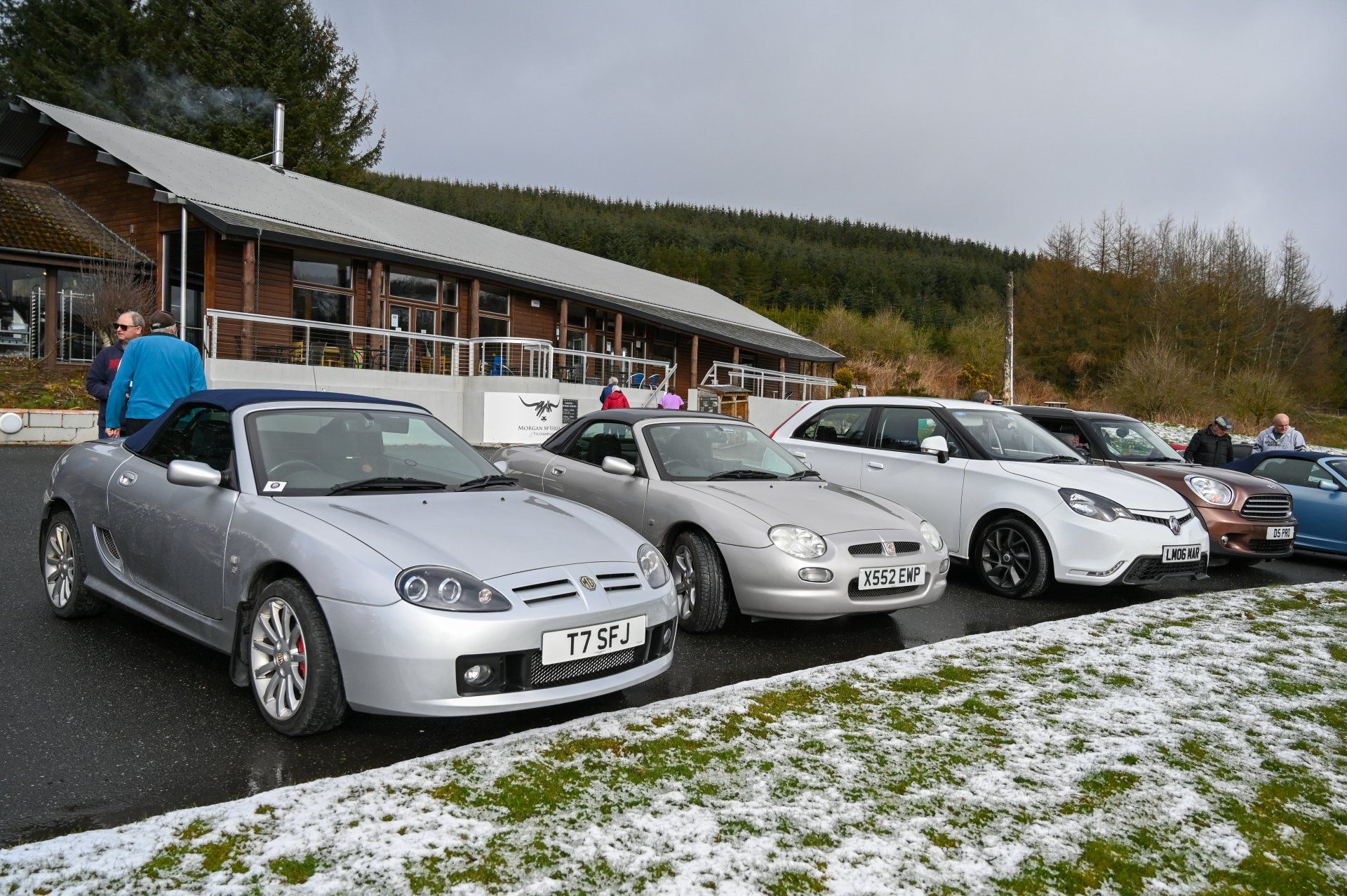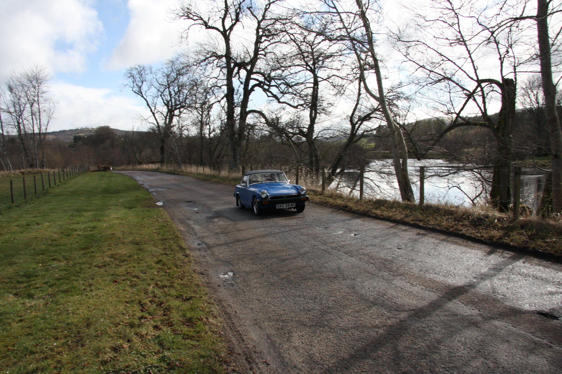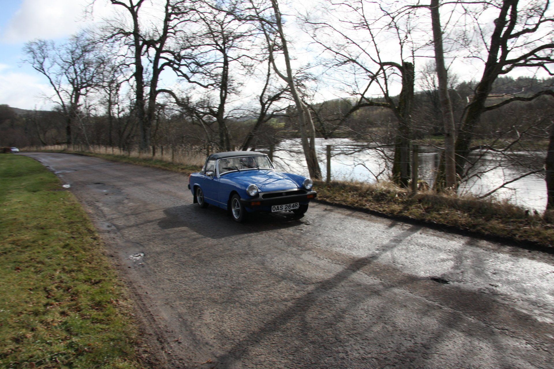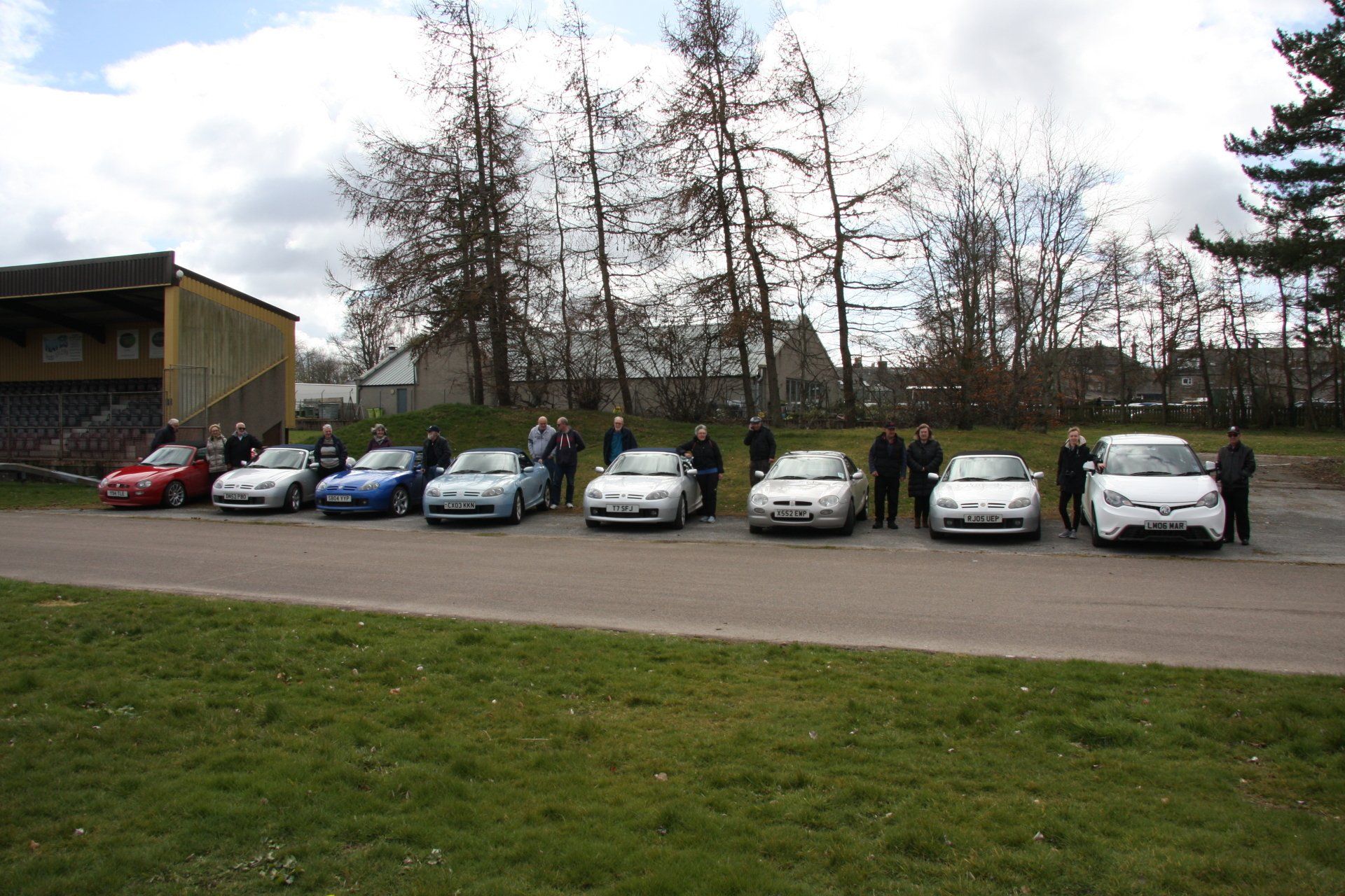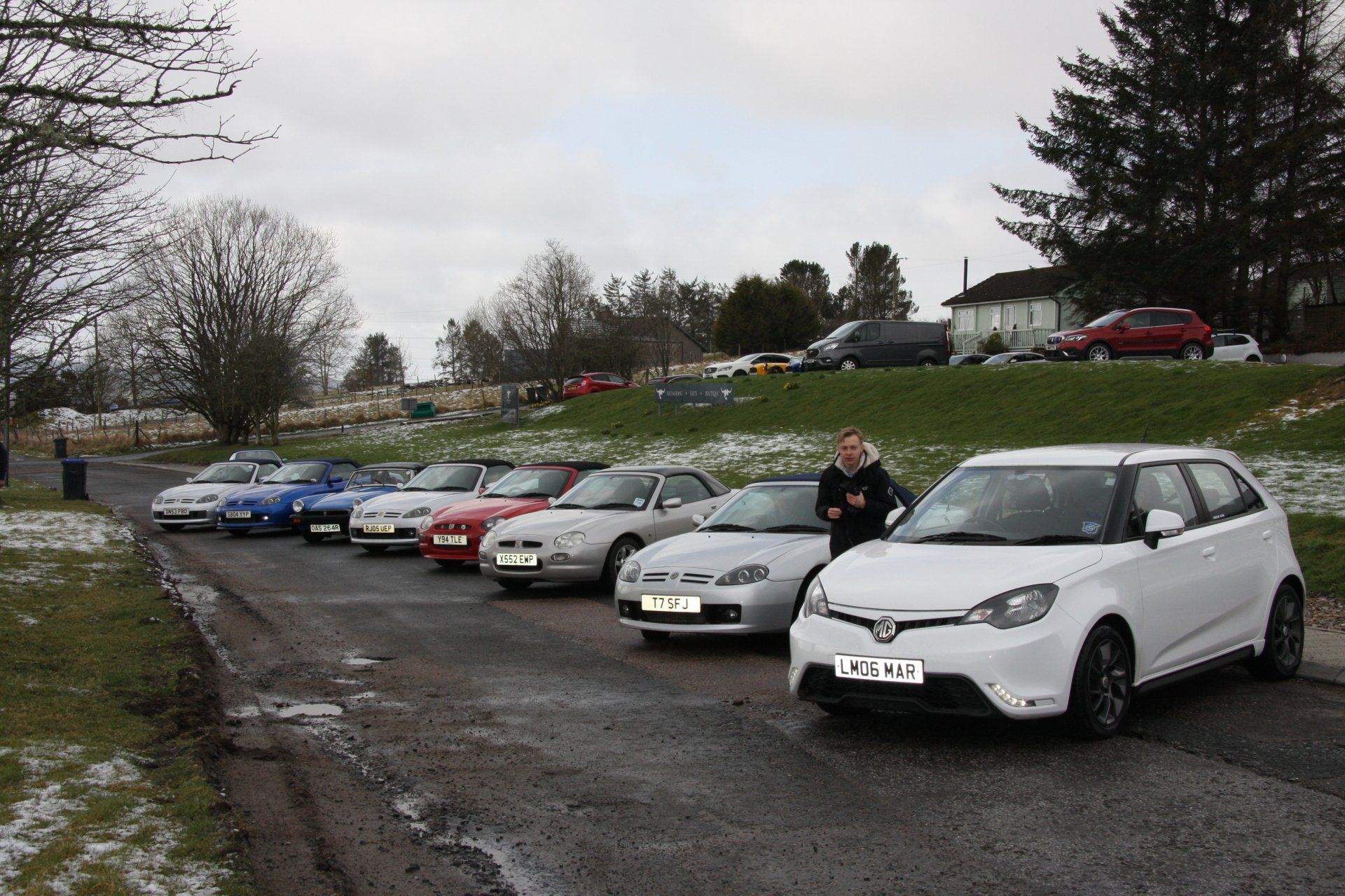 Luckily though, Saturday 9th dawned bright and sunny and although it was still quite cold, a healthy 15 cars congregated at Morgan McVeigh’s for a coffee and a bacon roll before heading off to Huntly for the start of the 2022 ‘Warm Up’ run. Curiously, all the roofs were up…..
