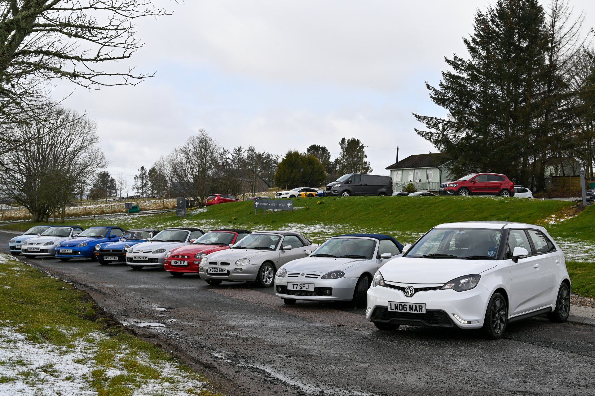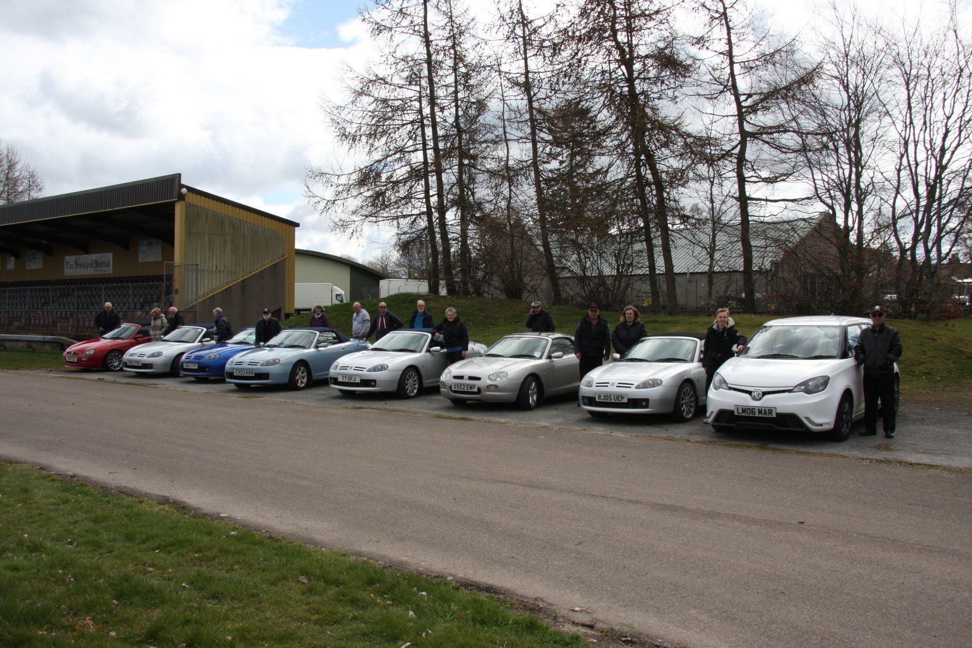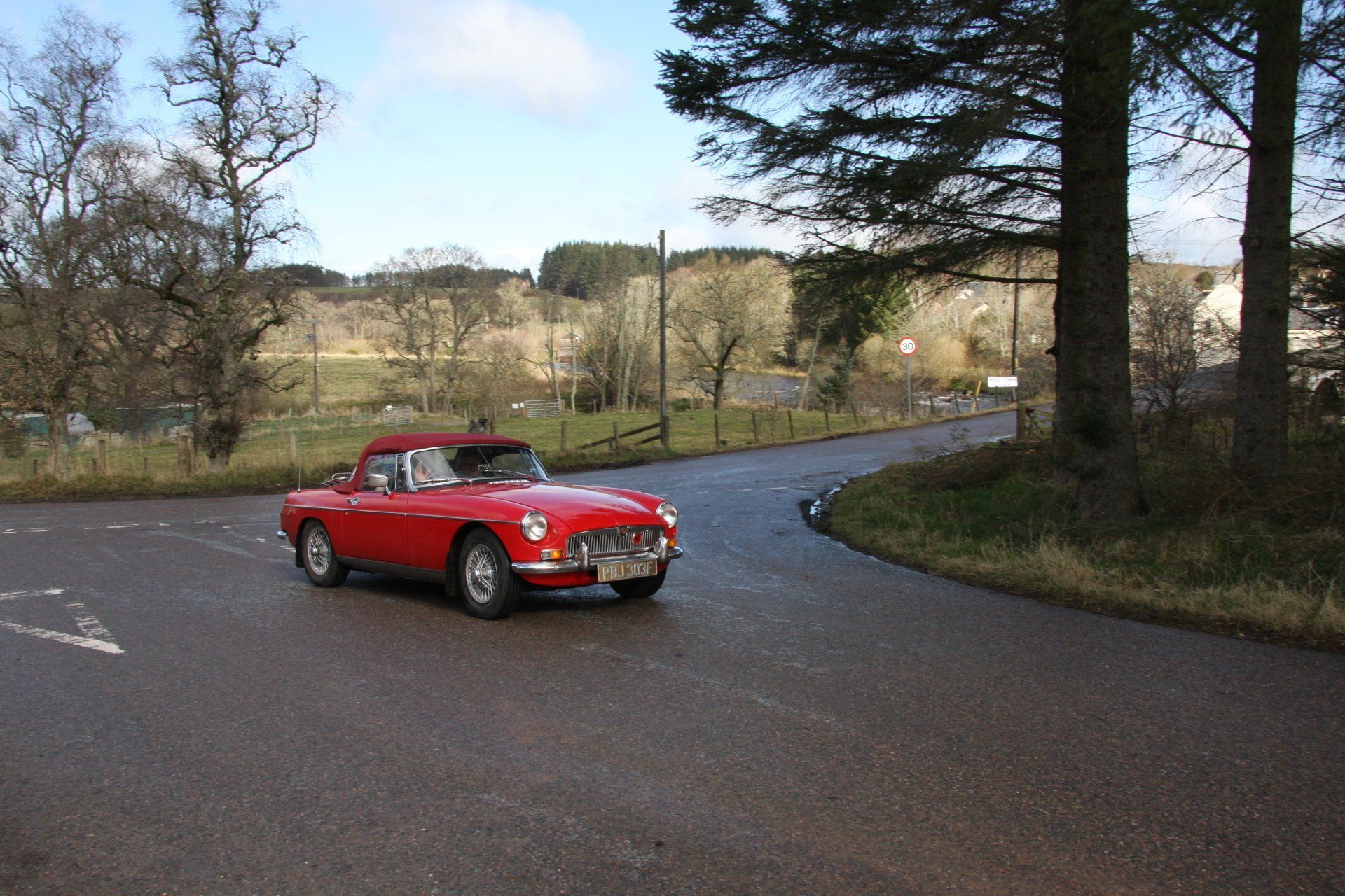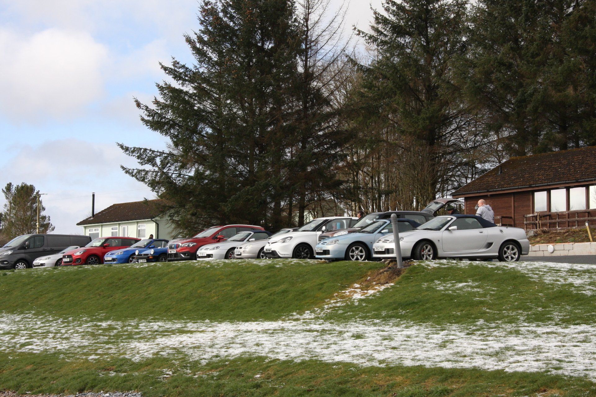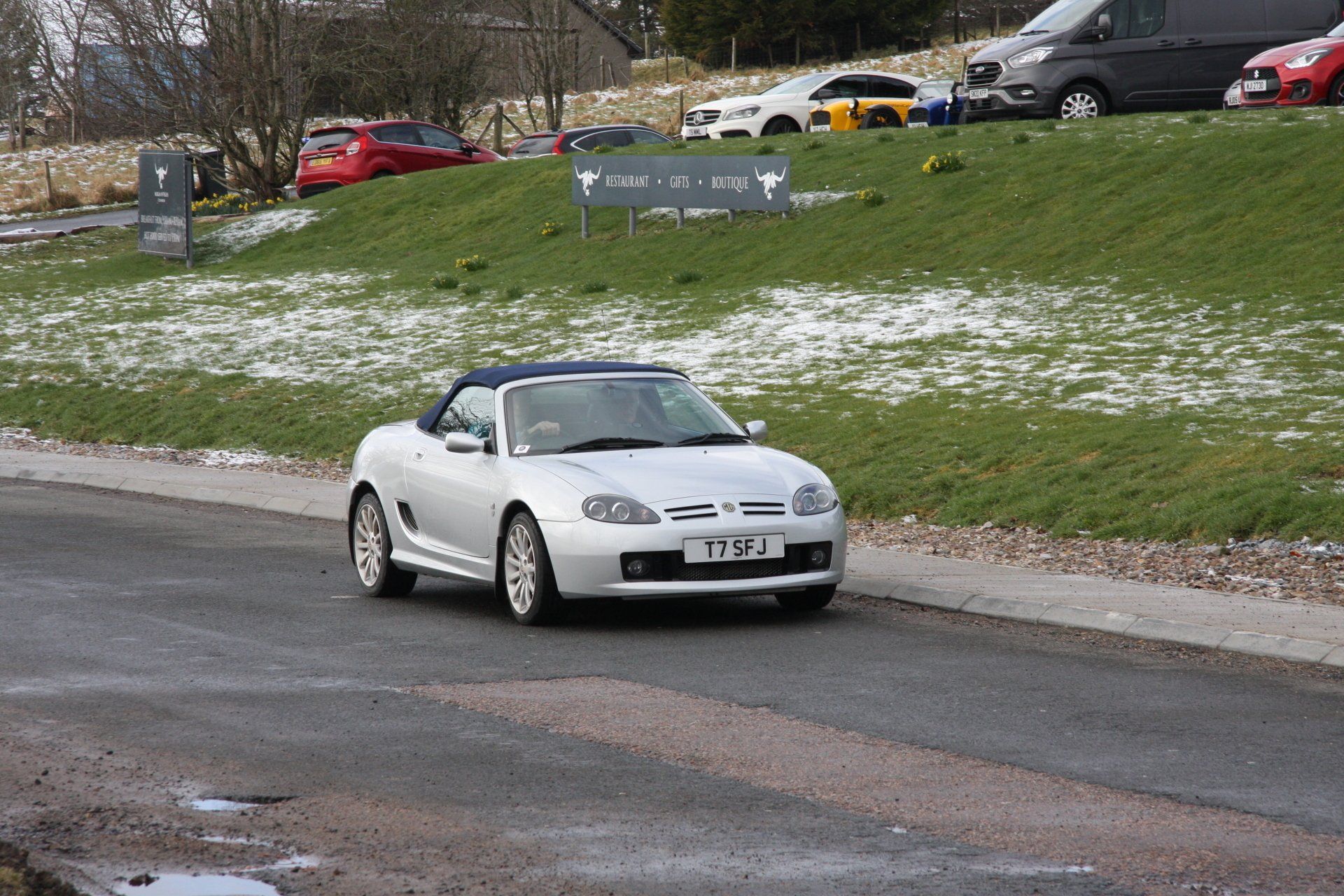 Luckily though, Saturday 9th dawned bright and sunny and although it was still quite cold, a healthy 15 cars congregated at Morgan McVeigh’s for a coffee and a bacon roll before heading off to Huntly for the start of the 2022 ‘Warm Up’ run. Curiously, all the roofs were up…..