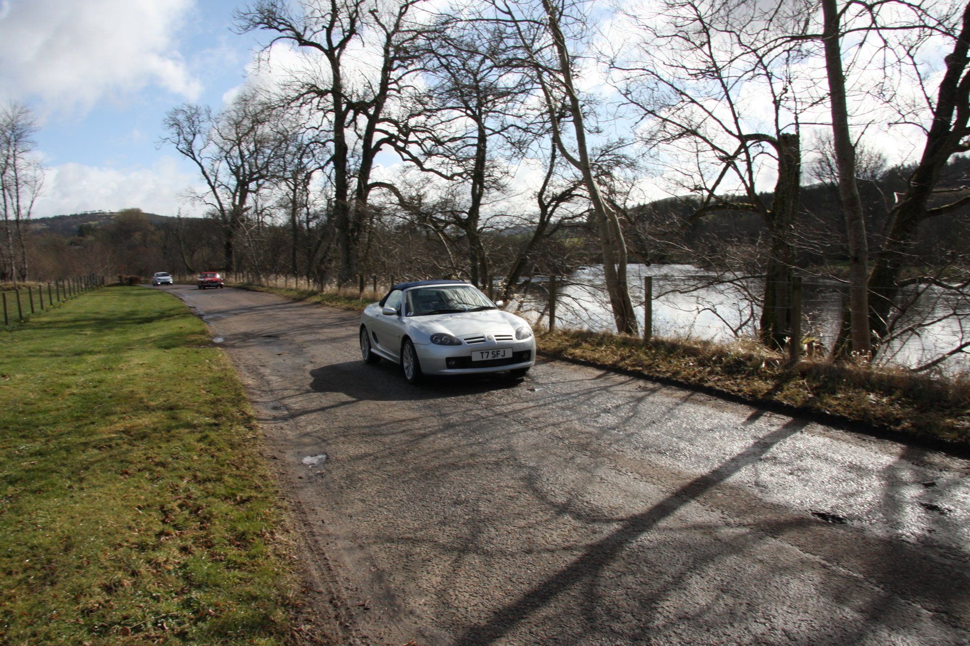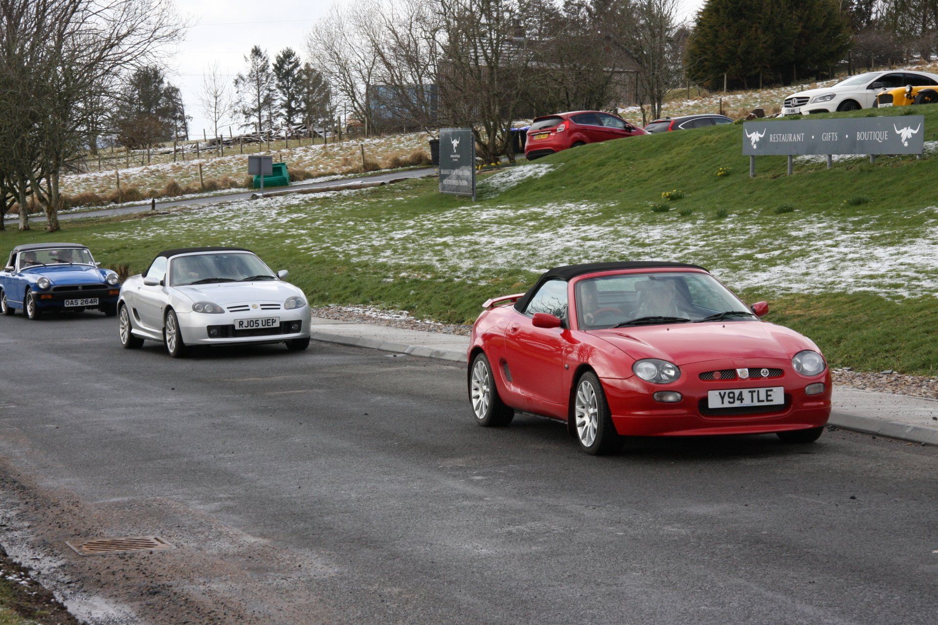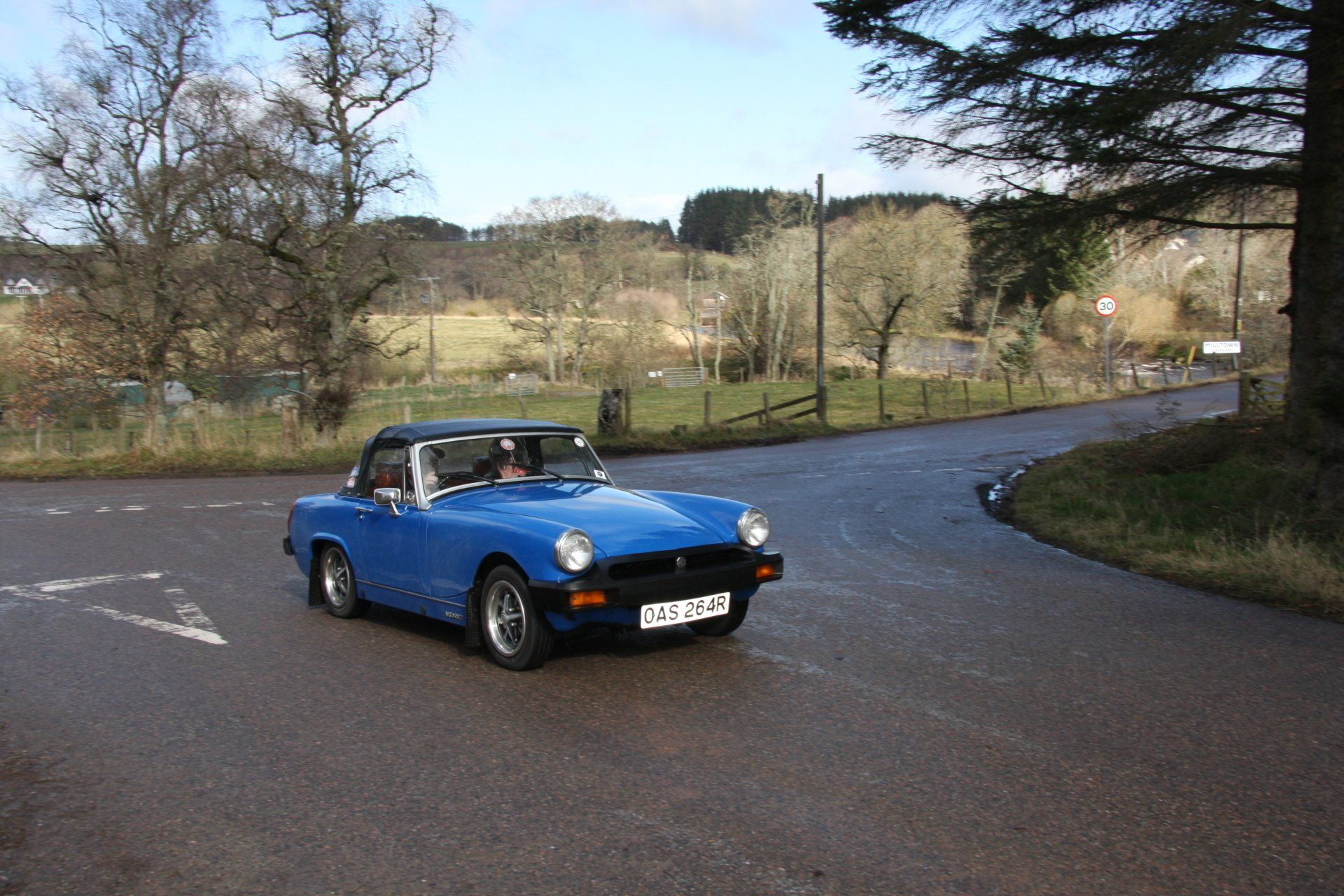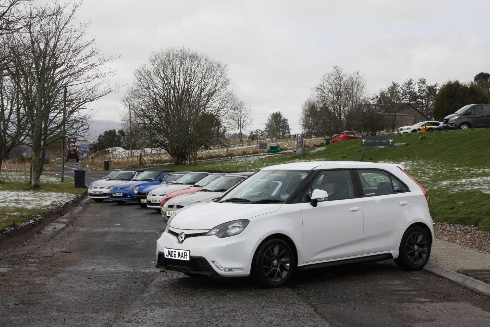 Luckily though, Saturday 9th dawned bright and sunny and although it was still quite cold, a healthy 15 cars congregated at Morgan McVeigh’s for a coffee and a bacon roll before heading off to Huntly for the start of the 2022 ‘Warm Up’ run. Curiously, all the roofs were up…..