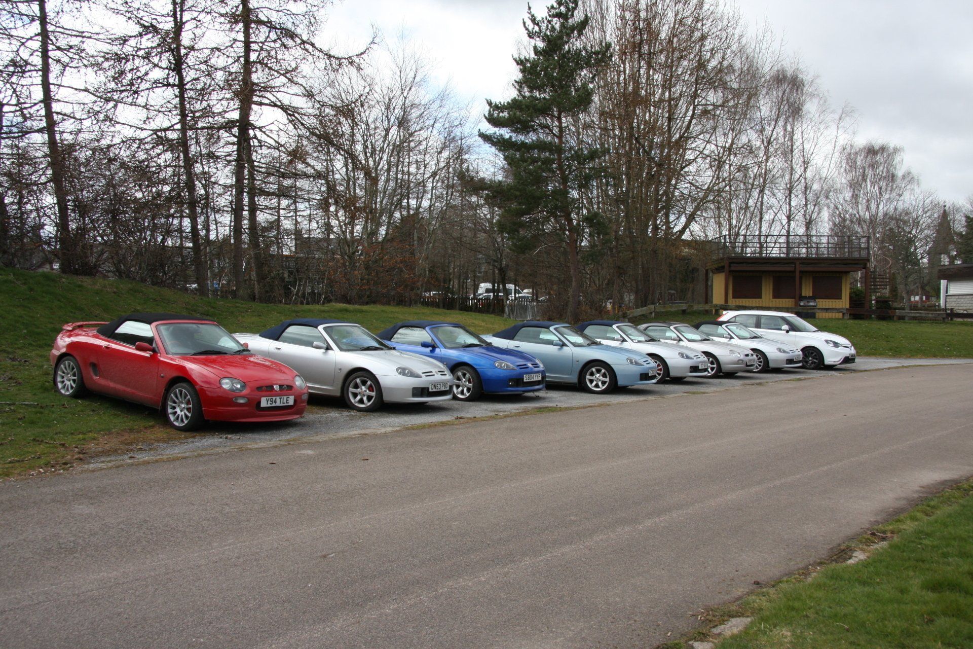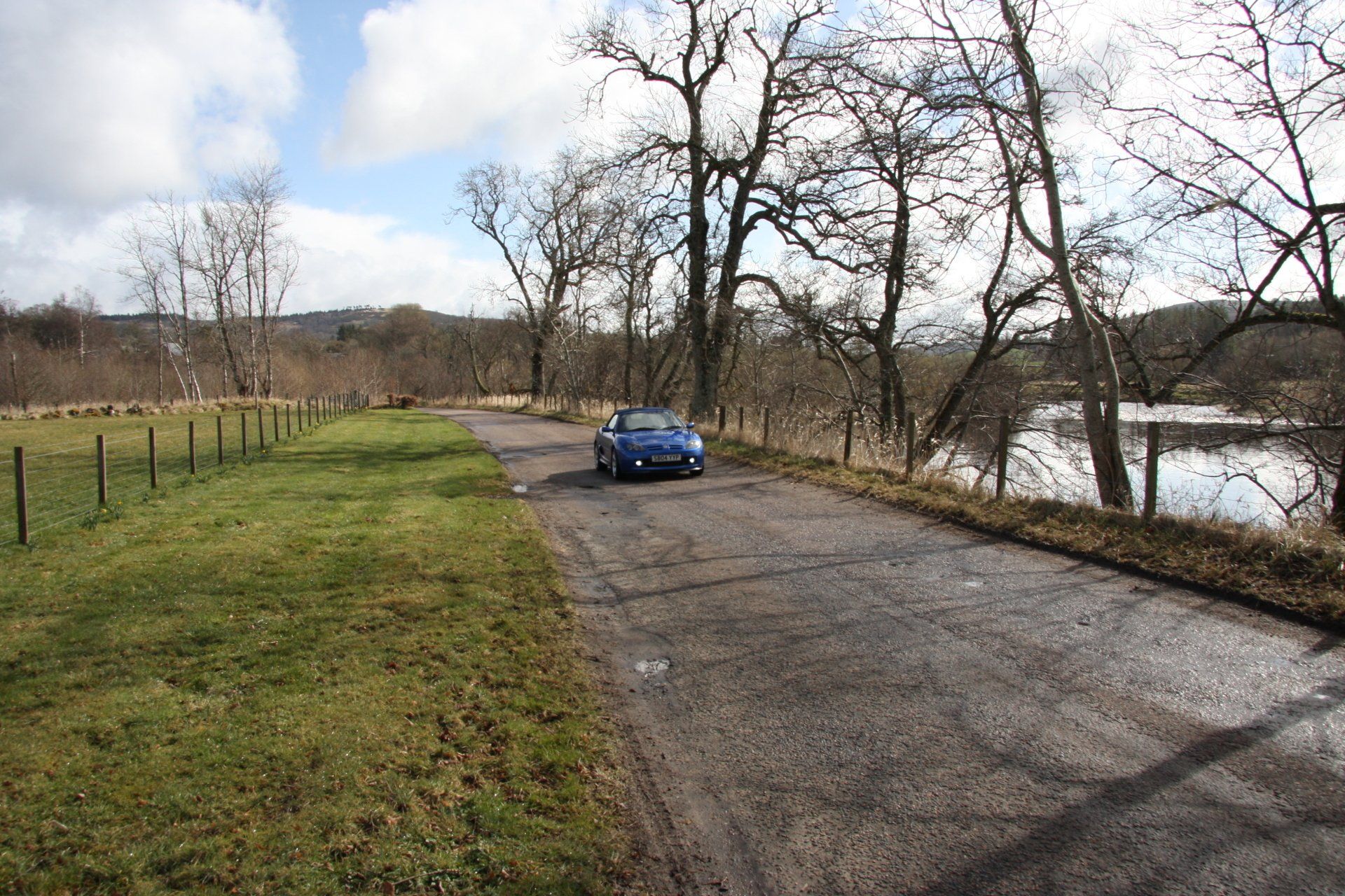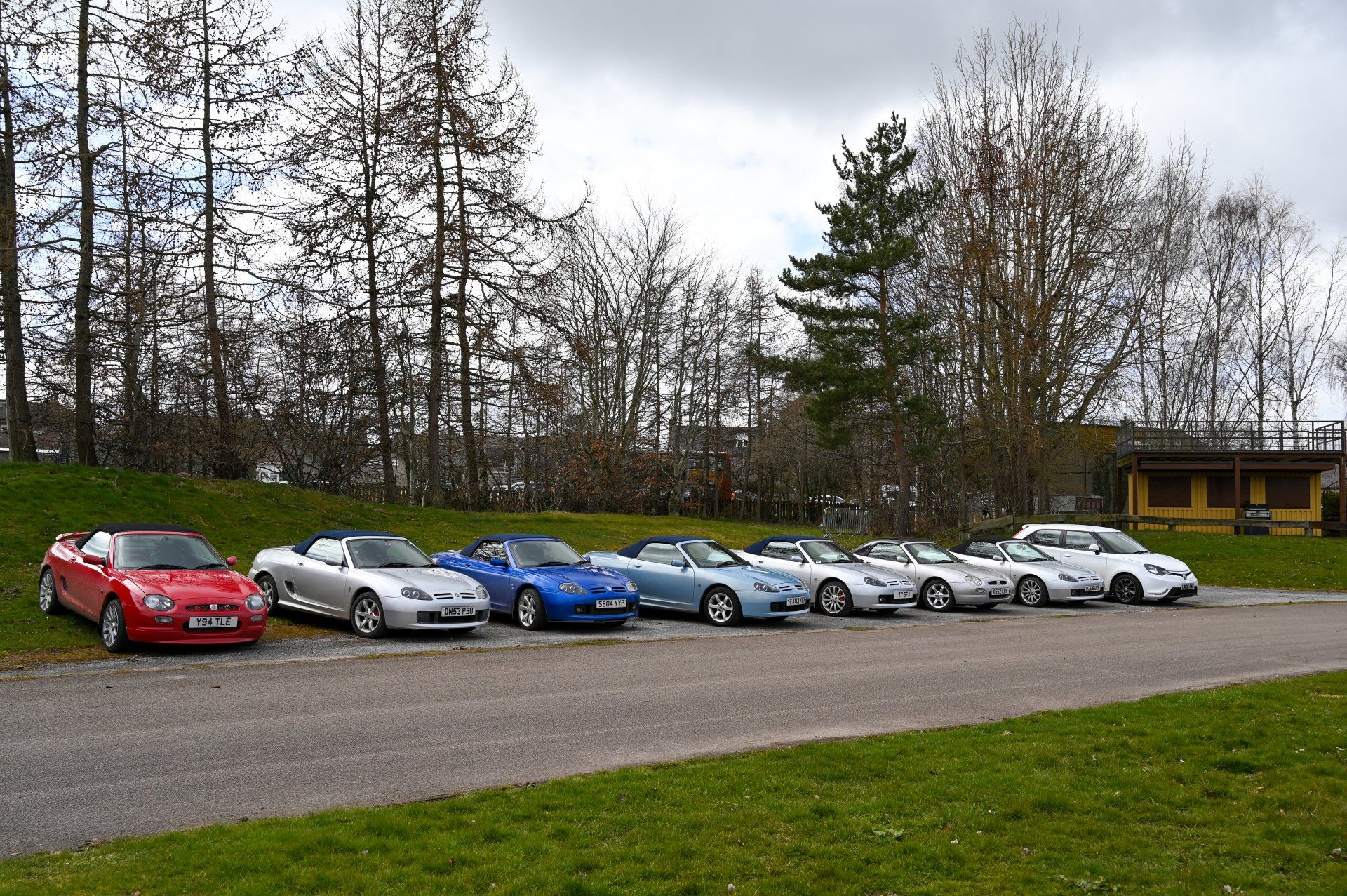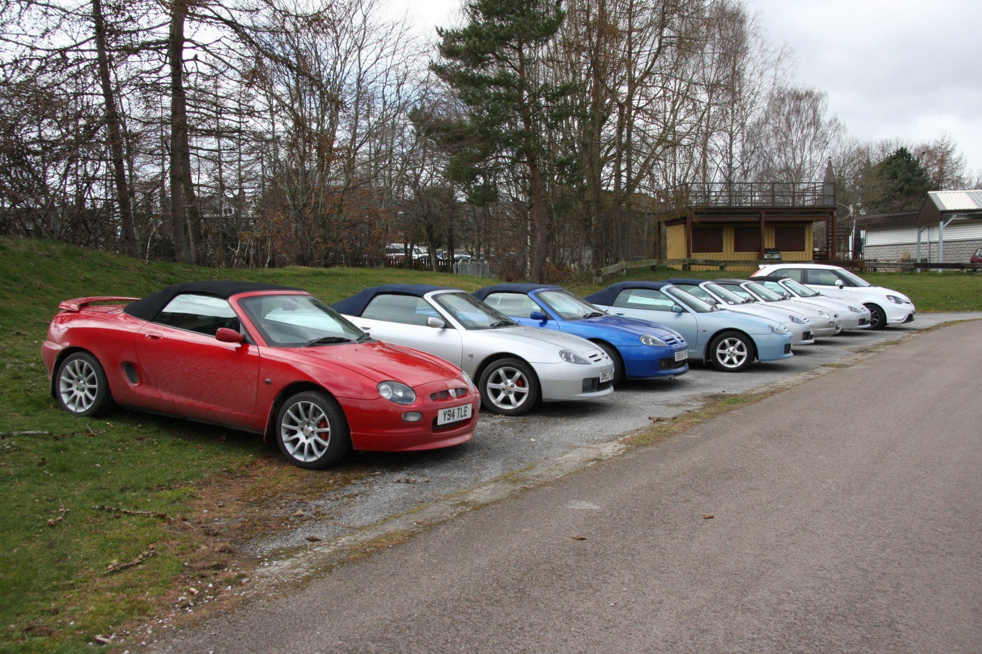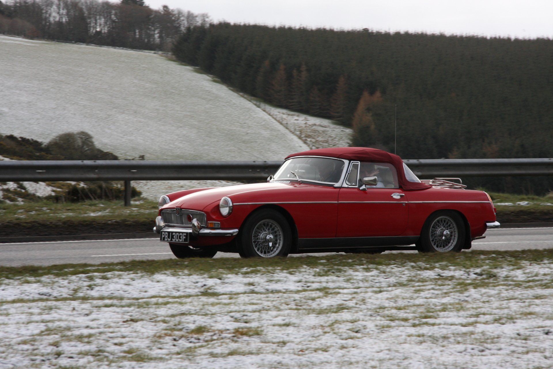 Luckily though, Saturday 9th dawned bright and sunny and although it was still quite cold, a healthy 15 cars congregated at Morgan McVeigh’s for a coffee and a bacon roll before heading off to Huntly for the start of the 2022 ‘Warm Up’ run. Curiously, all the roofs were up…..