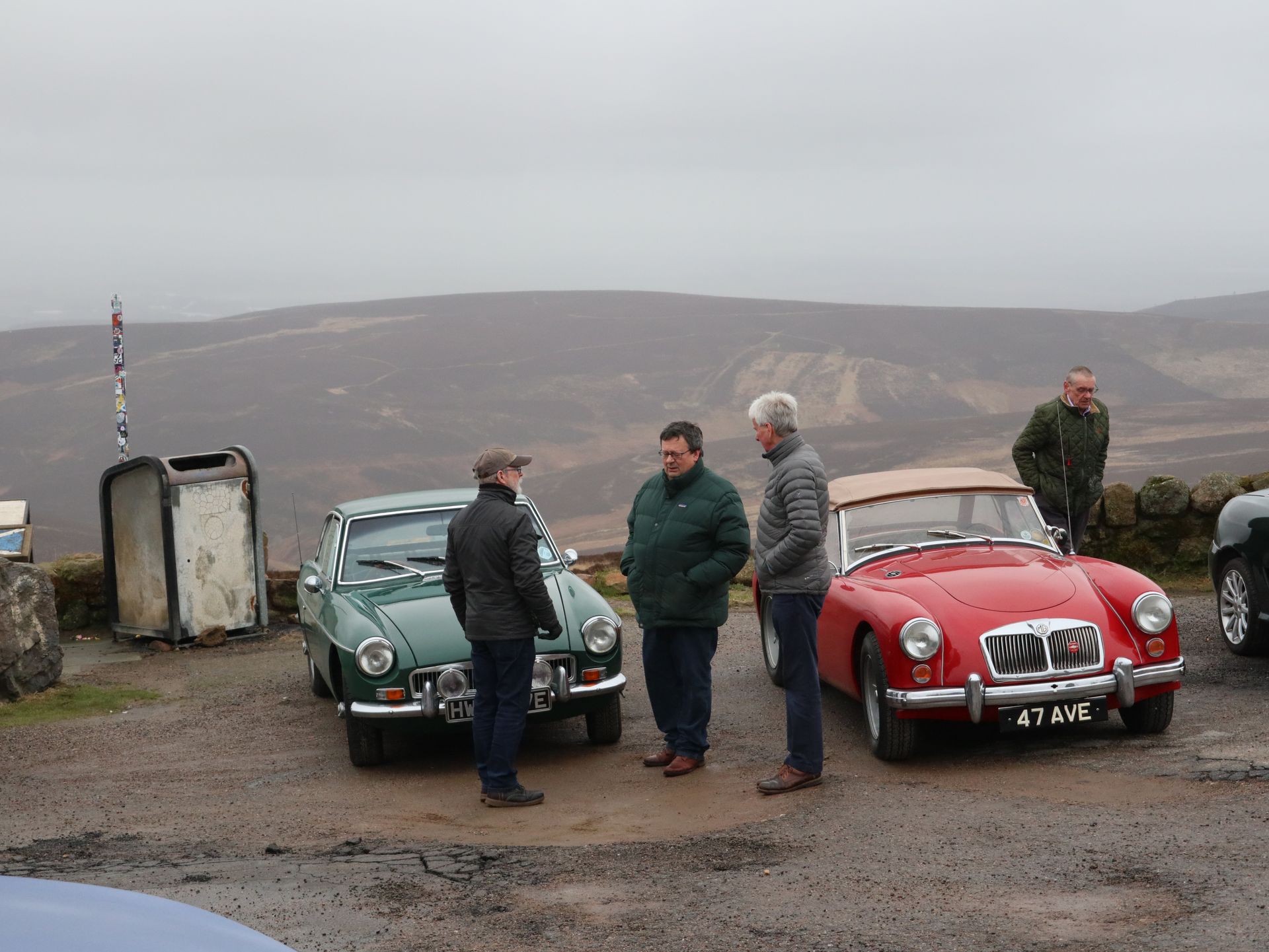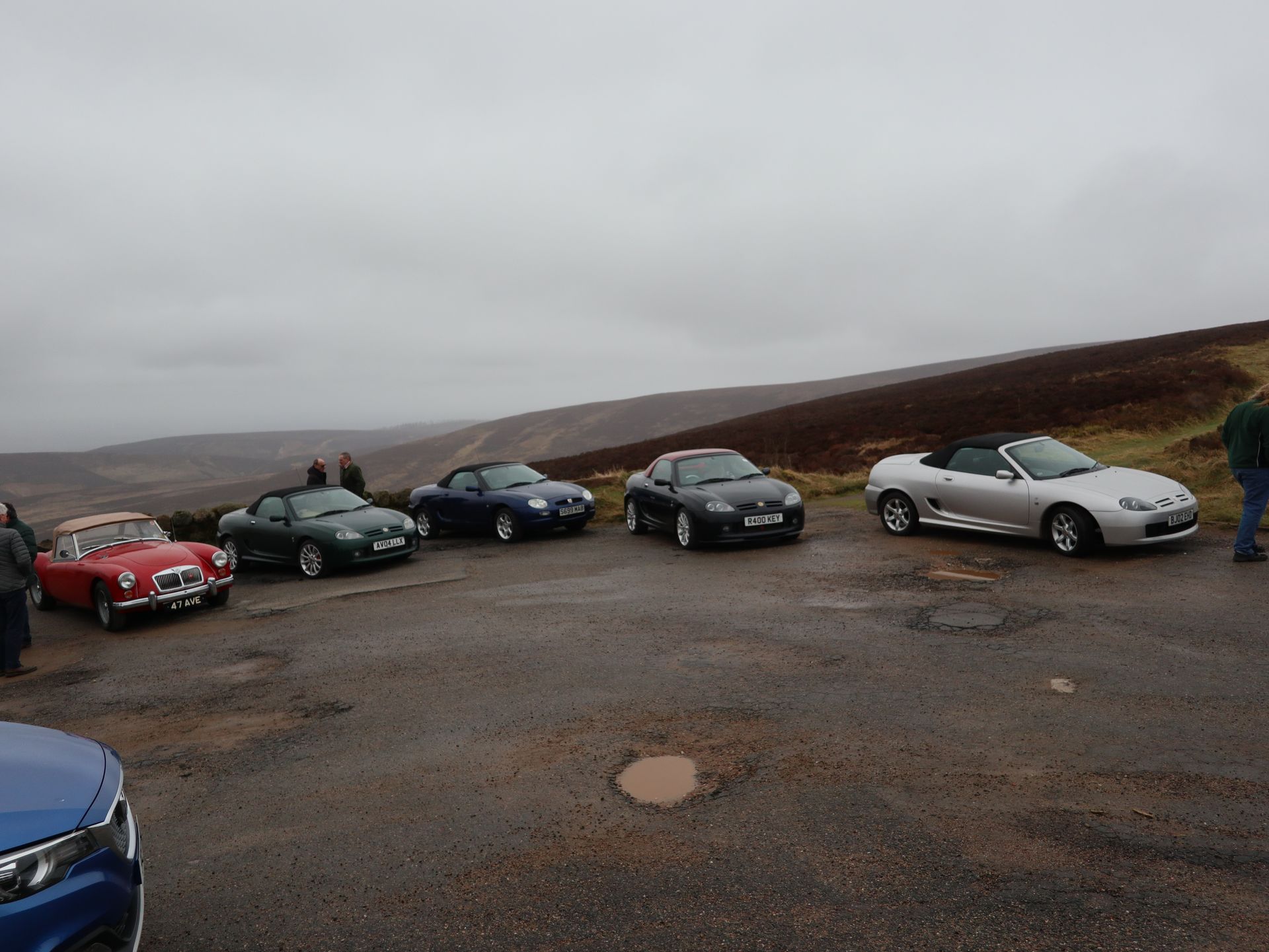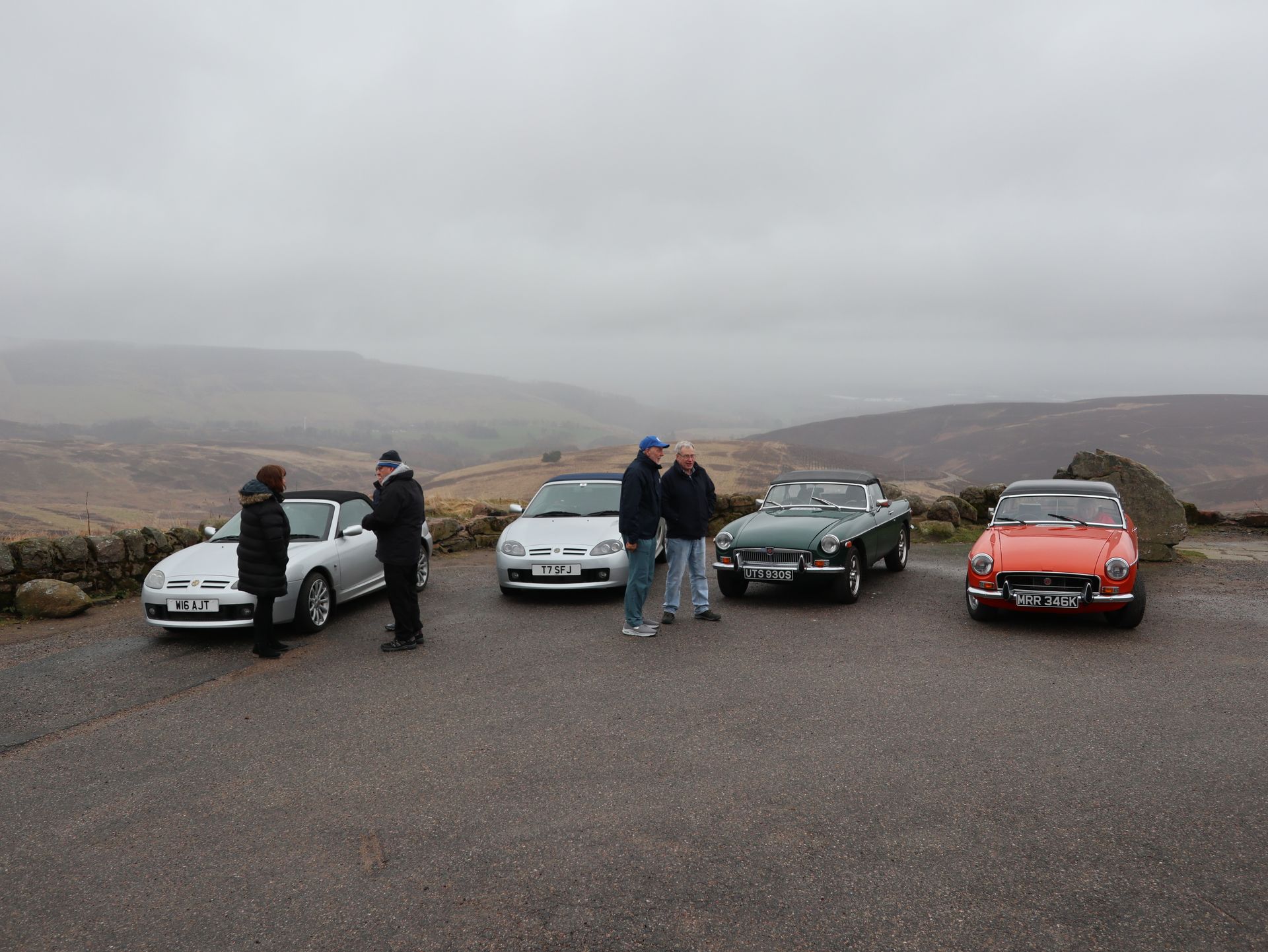 Nonetheless, around 44 brave soles met at Castleton Farm Shop for a fantastic breakfast which, as it had been pre-ordered, was served very promptly. Given the inclement weather, only one brave couple – Stuart and Liz – were brave enough to have the top down, perhaps the fact that it was their MGB’s 50th birthday had something to do with it; all the others had roofs firmly up and heaters on! Still, it was better that last years run which started with snow on the ground...
