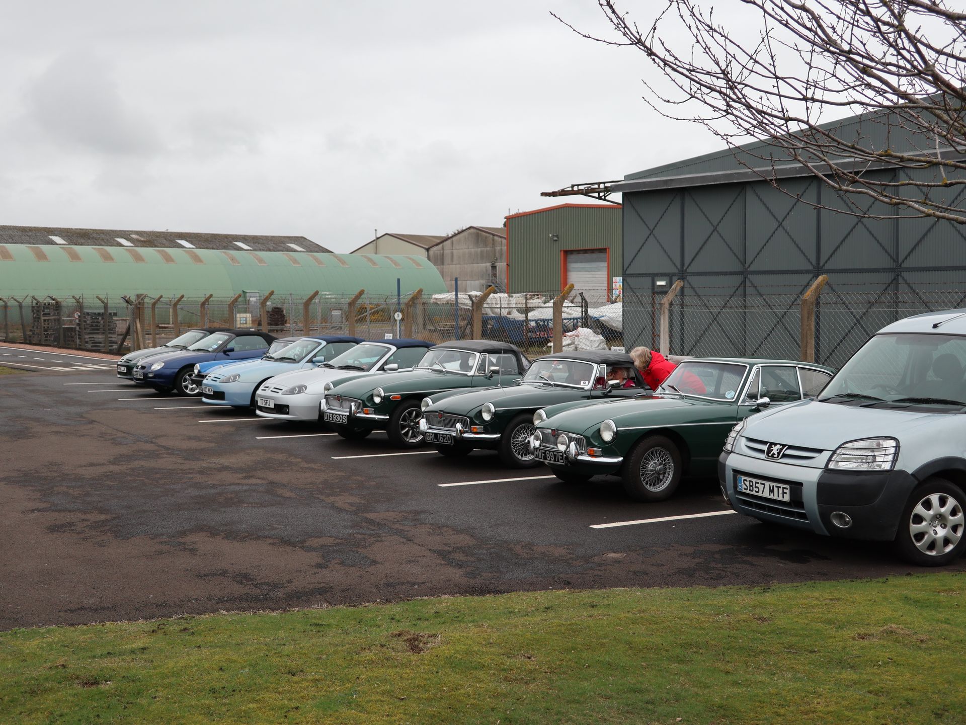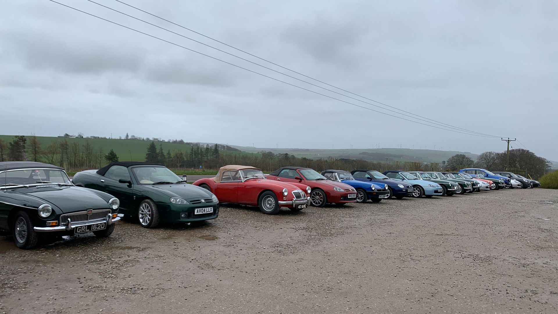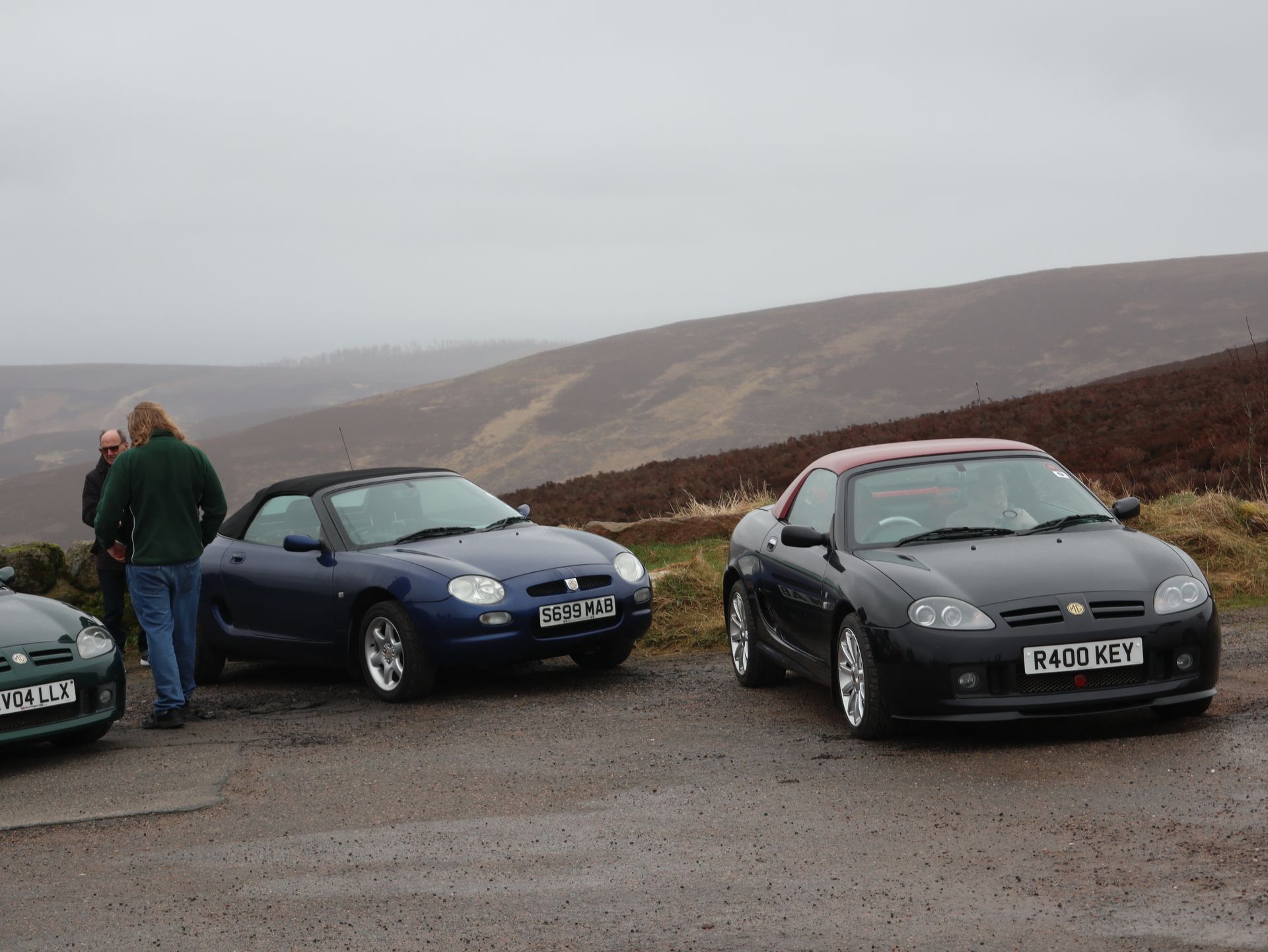 Nonetheless, around 44 brave soles met at Castleton Farm Shop for a fantastic breakfast which, as it had been pre-ordered, was served very promptly. Given the inclement weather, only one brave couple – Stuart and Liz – were brave enough to have the top down, perhaps the fact that it was their MGB’s 50th birthday had something to do with it; all the others had roofs firmly up and heaters on! Still, it was better that last years run which started with snow on the ground...