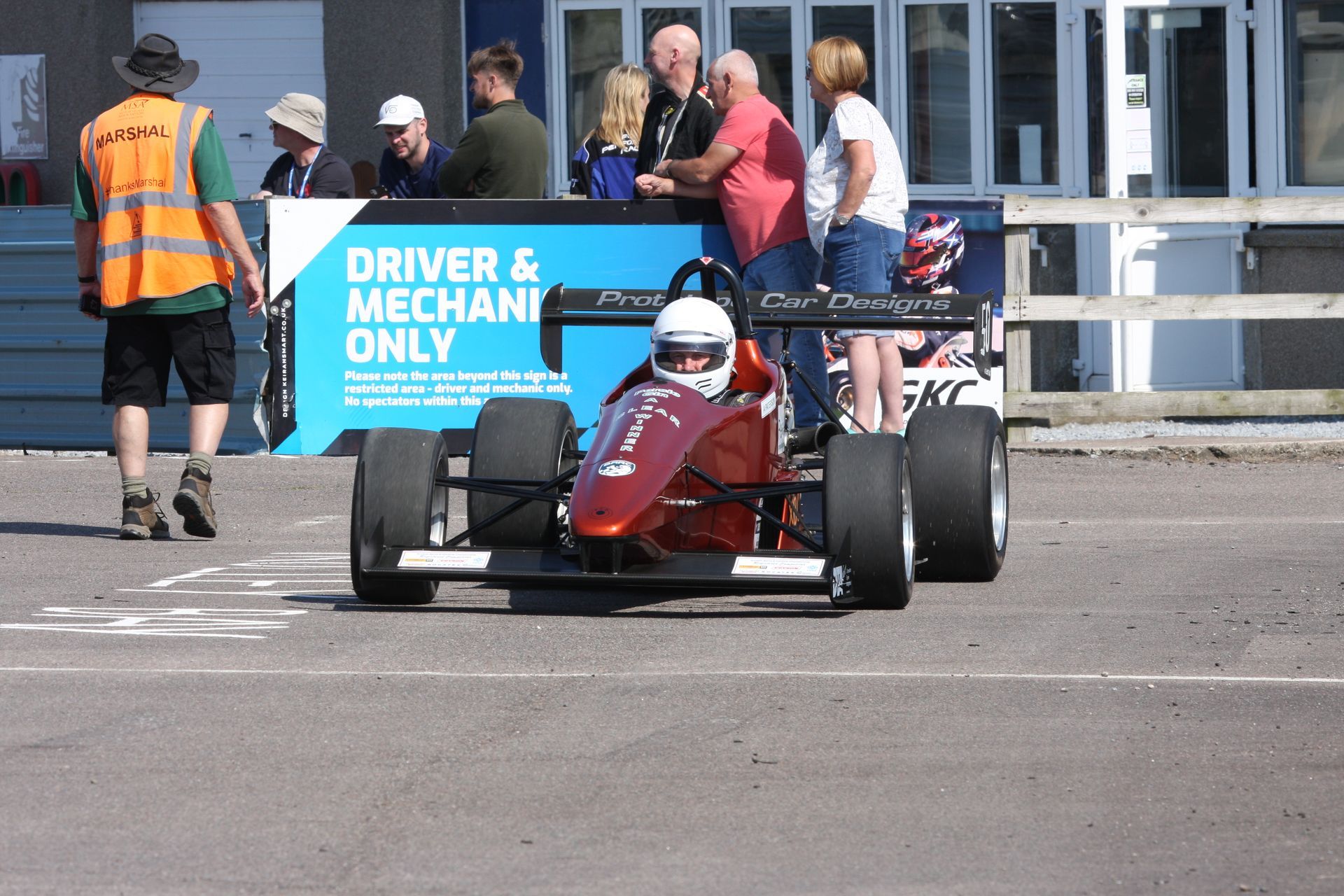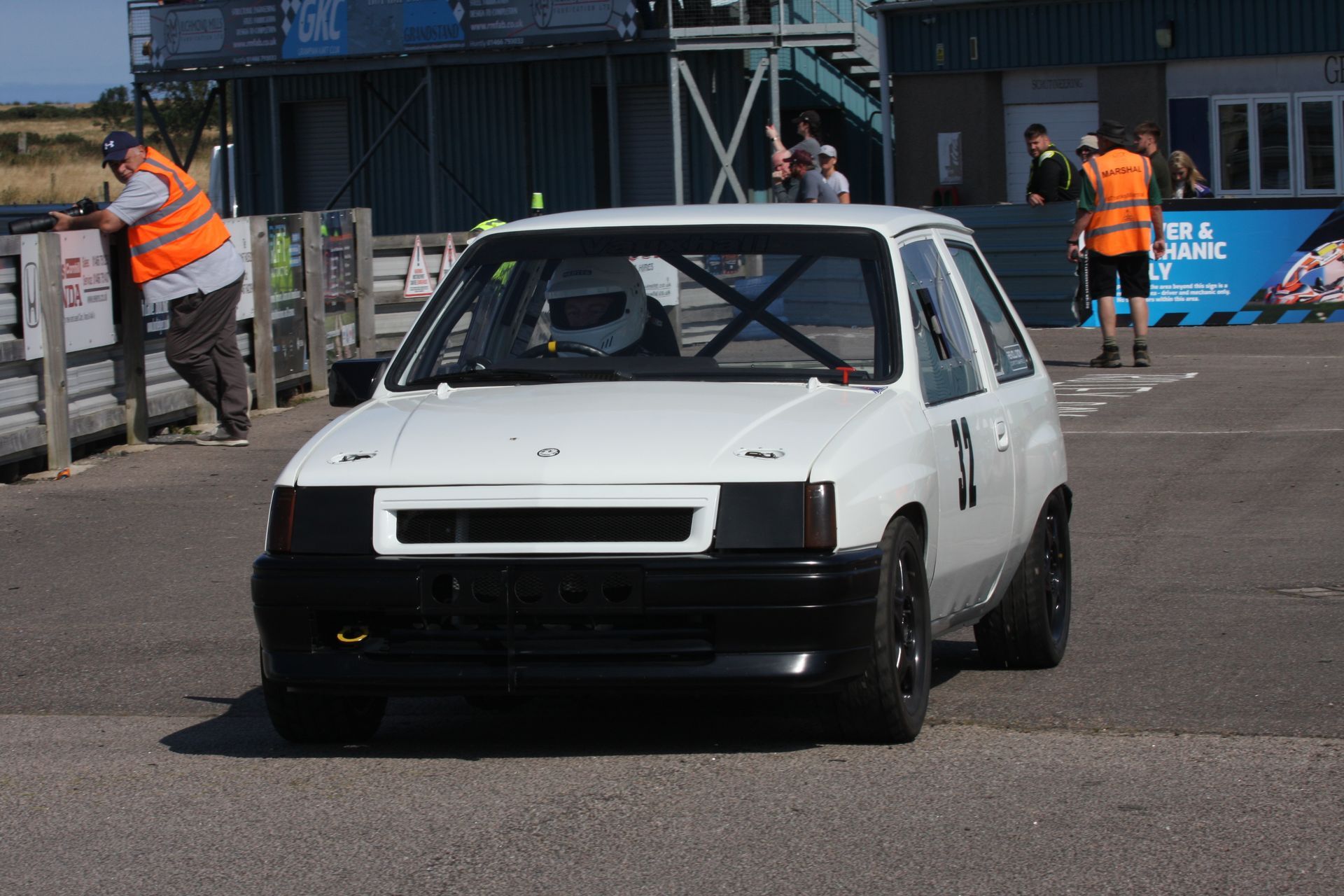 Suitably fed and watered, 8 cars set off on the run to Boyndie. Rather than use main roads, Alistair Thomson led us on a cross country route to the venue and on arrival, we parked in a roped off area specifically for us that John had kindly arranged with the organisers. Just as we arrived, one of the competitors suffered a blown turbo on the circuit and managed to deposit a large amount of oil on the track, and so there was a lengthy delay whilst this was cleared up. There was then a subsequent driver's briefing and a track walk for the drivers to note where the oil had been dumped!